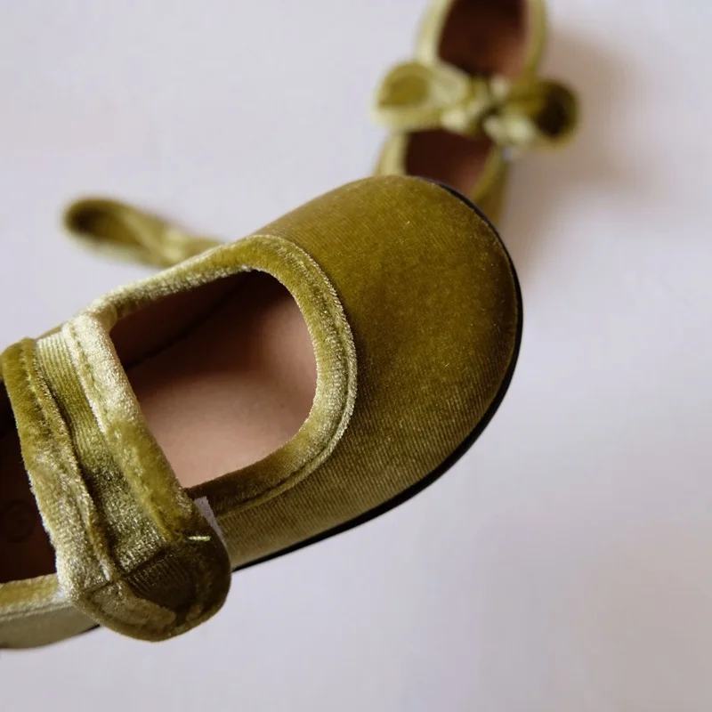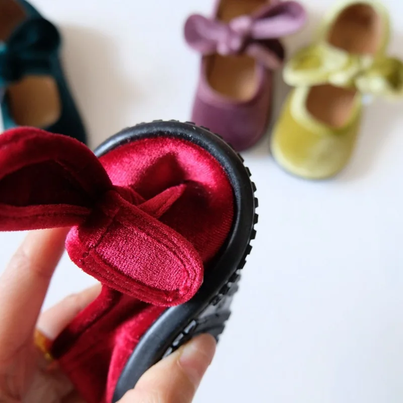 Туфли женские осенне-зимние, с бархатным бантом, на плоской подошве
