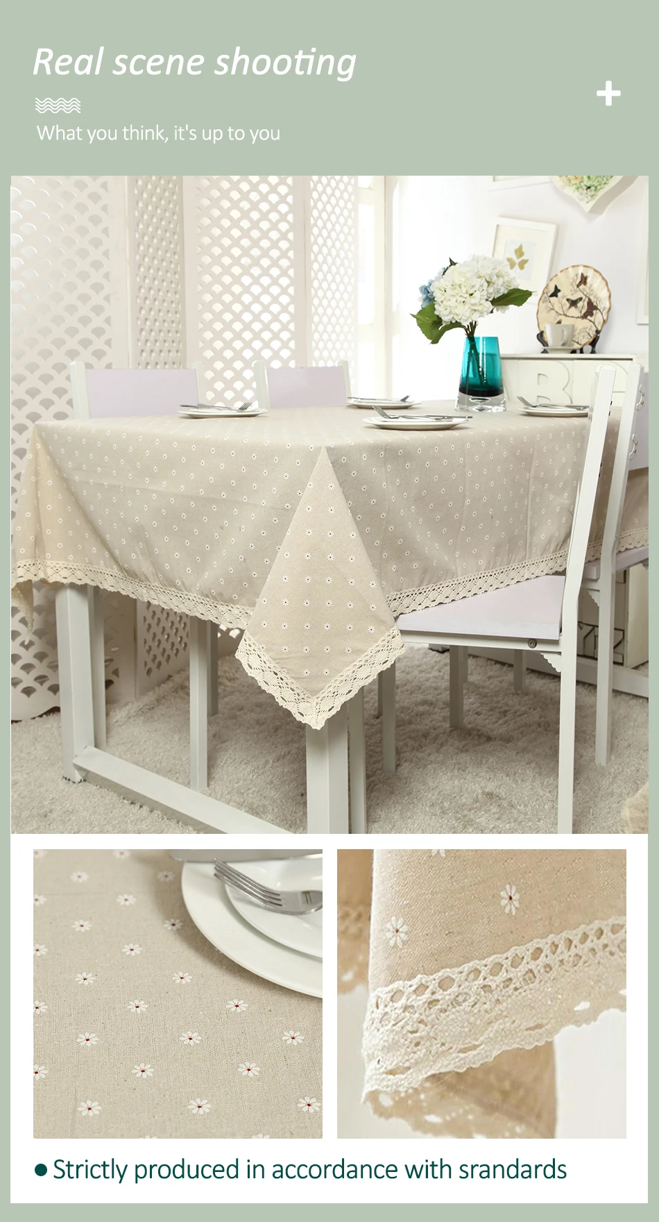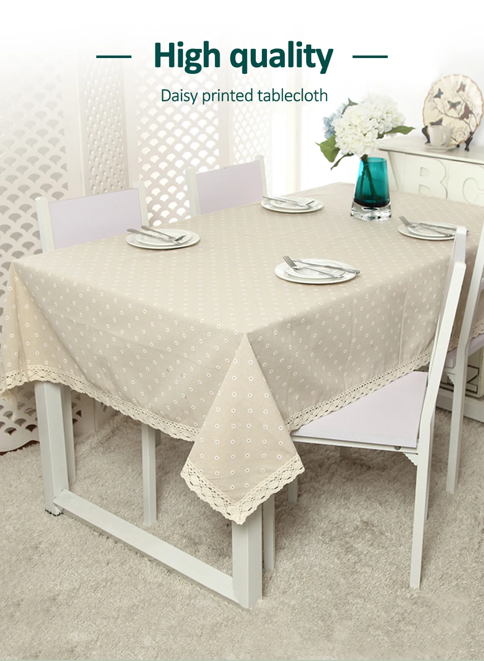 Скатерть кружевная прямоугольная, льняная скатерть с принтом маленьких ромашек, для свадьбы, банкета, улицы, дома