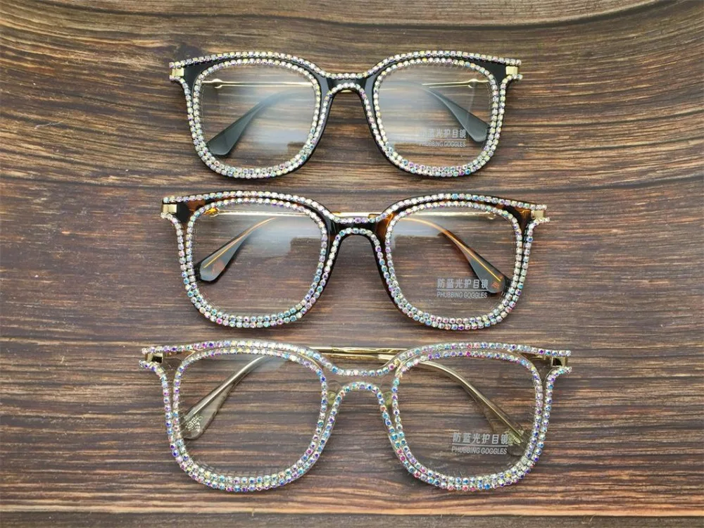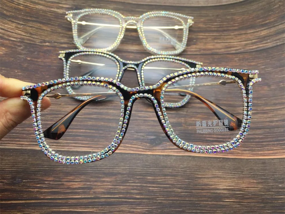 Готовые Очки для близорукости женские офисные трендовые компьютерные очки с синим светом Женские квадратные очки Роскошные очки Стразы