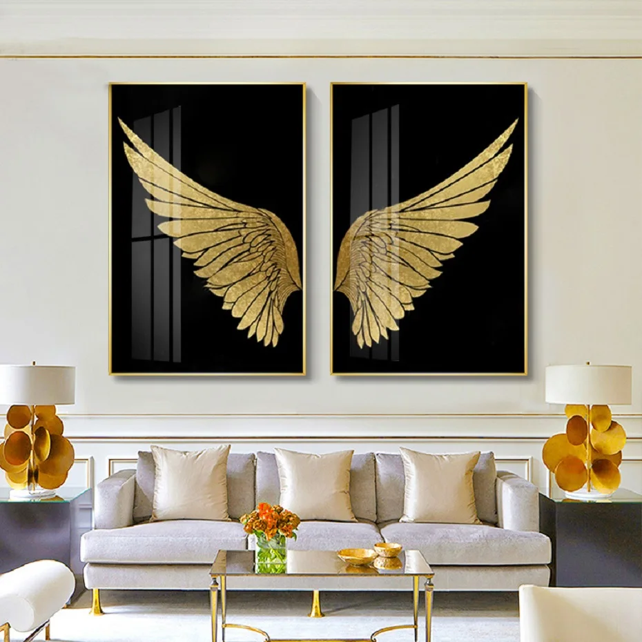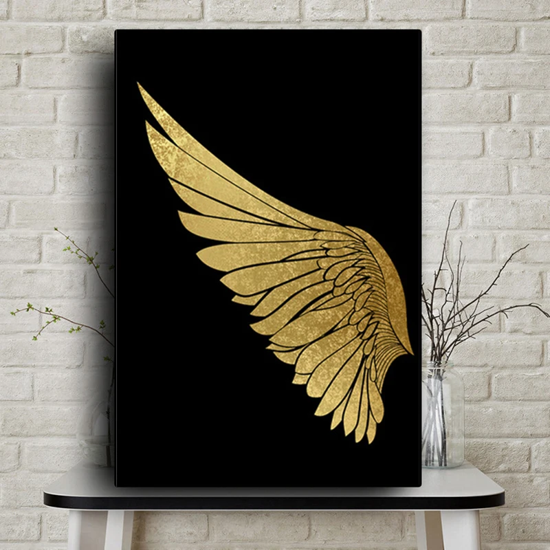 Картина на холсте, с абстрактным крылом мечты, черно-золотые плакаты и принты, настенные картины, украшение для дома, без рамки