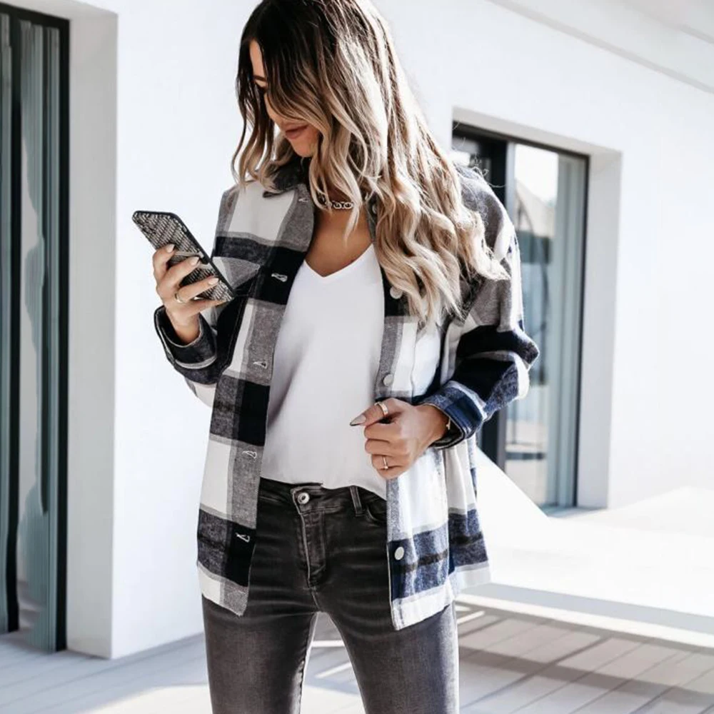 Рубашка женская с длинным рукавом Блузки, блузка на пуговицах, топ женский с воротником, рубашка женская в клетку oversize, блузка женская 2022,женская одежда,кофта