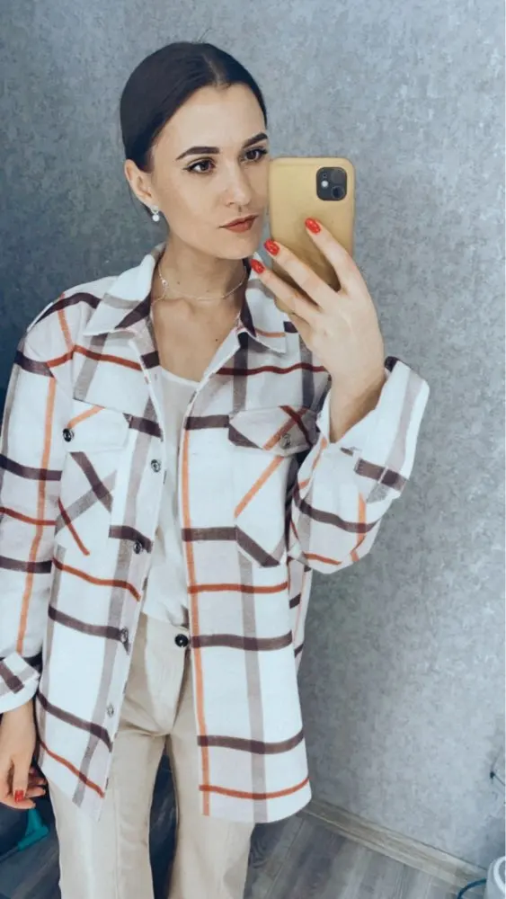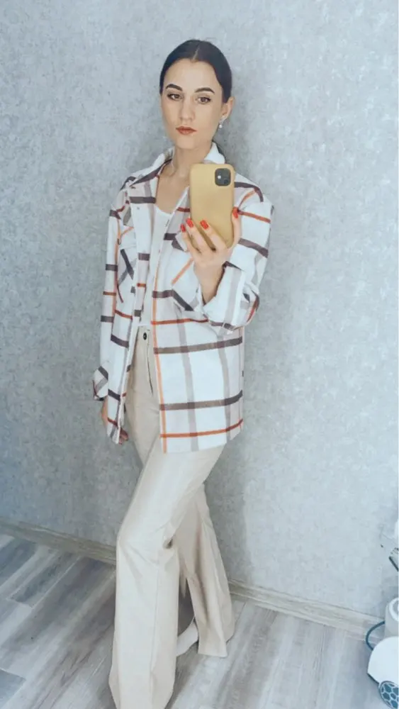 Рубашка полностью соответствует описанию по цвету, по фасону и по виду. Плотная, жалко что полиэстр полеостью. акктурано пошита, пуговицы классные. Мне очень нравится. Я вляза 2 хл на 48 размер. Сидит как оверсайз, но не как мешок. Рукава на рост 160 см. длинные, но я планировала все равно подкатывать. Трек отслеживался и пришло без задержек. Всем рекомендую
