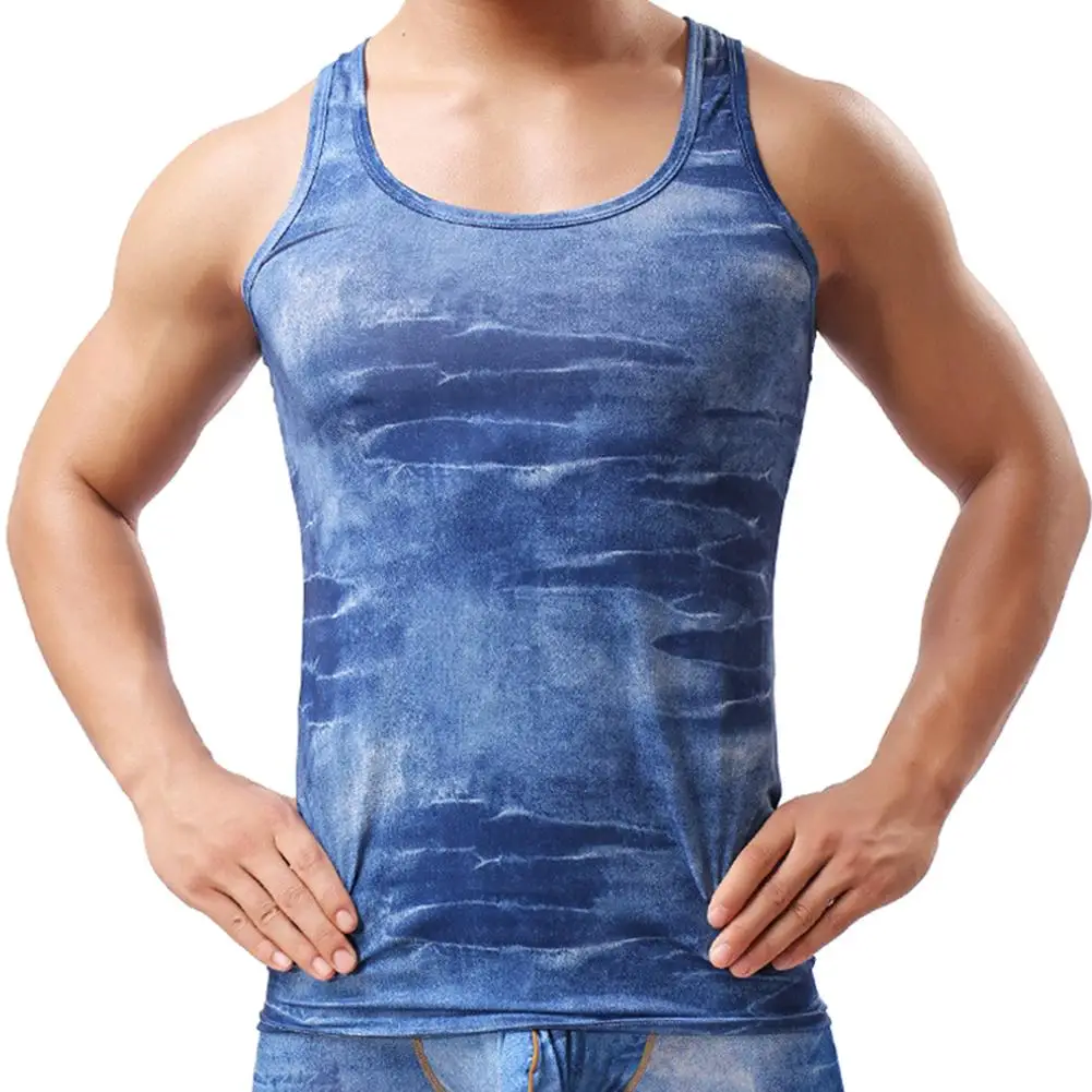 Майка мужская однотонная без рукавов, пикантный облегающий жилет из искусственной кожи с глубоким вырезом, тренировочная майка, черный цвет, XL, летняя одежда