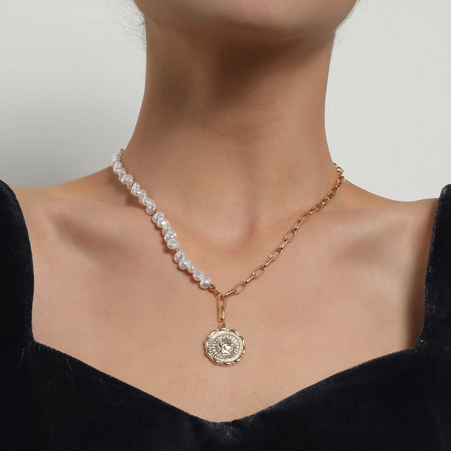Ожерелье KMVEXO асимметричное с жемчугом и бусинами, цепочка-чокер с голова королевы кулон с портретом, ожерелье для женщин, Ювелирное Украшение