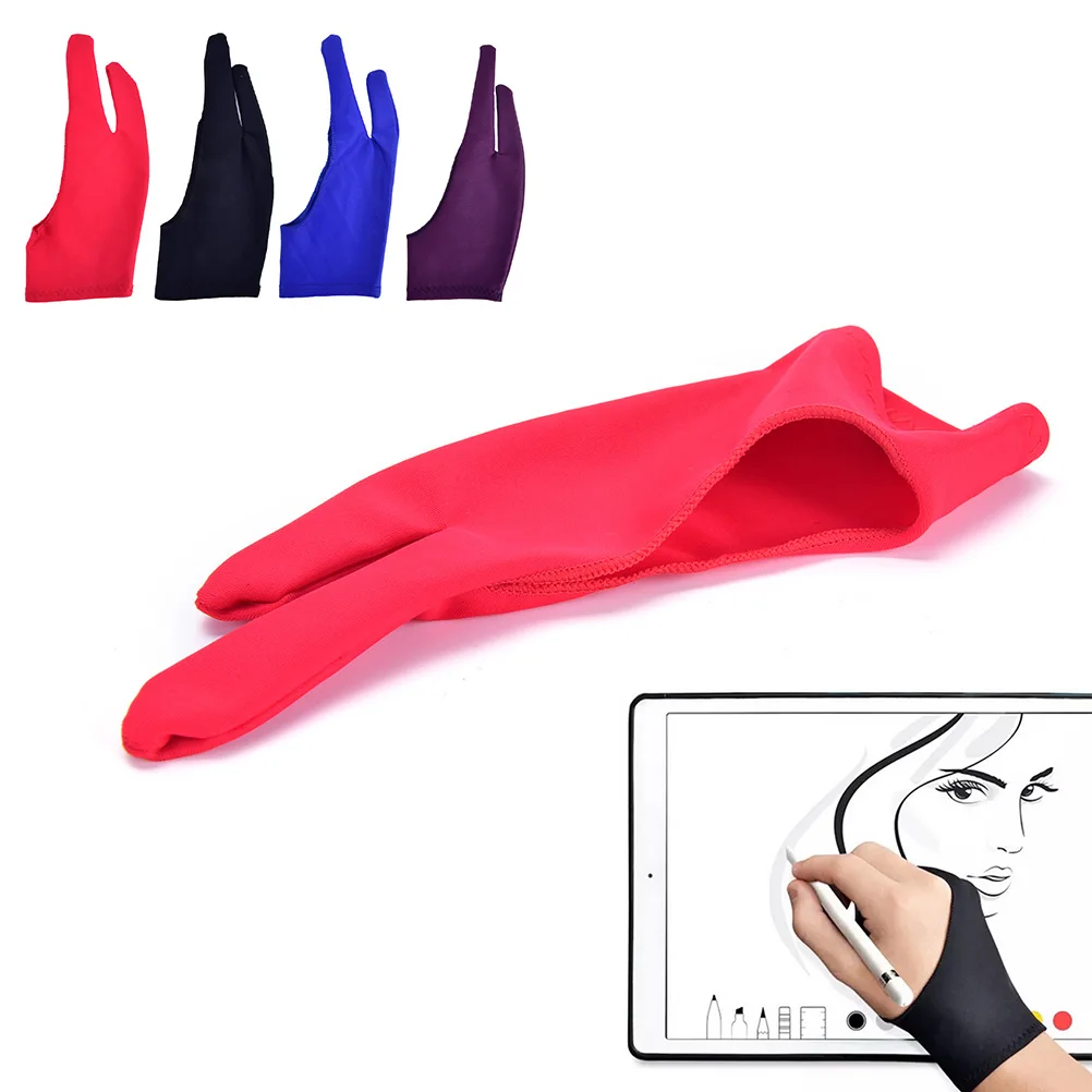 Перчатка для рисования с двумя пальцами, для любого графического планшета, черная, с 2 пальцами, с защитой от обрастания, для правой и левой руки, Черная