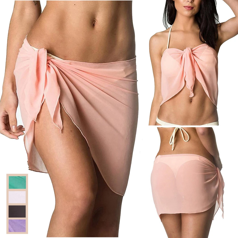 Женская юбка с запахом, сексуальная накидка на бикини, шифоновое короткое саронг, праздничное пляжное платье, купальник, мини-саронги, летний купальный костюм