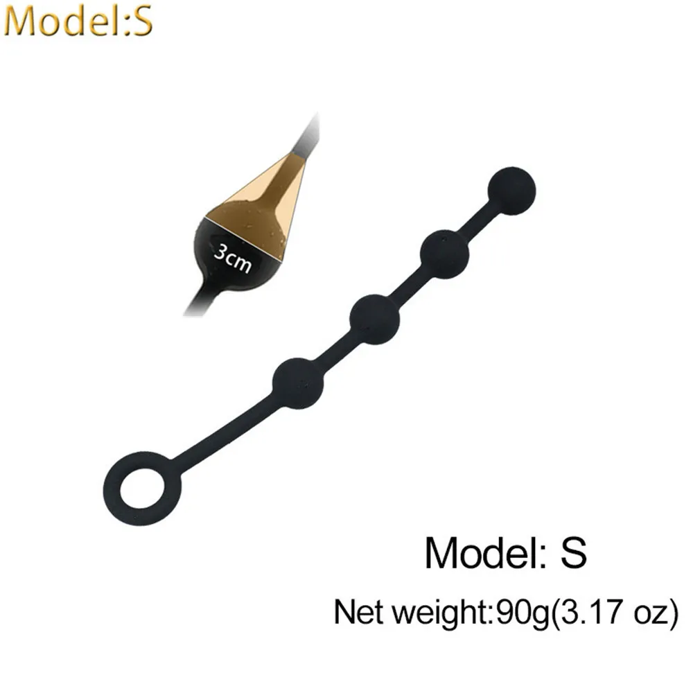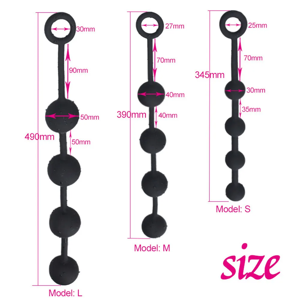 Характеристика: 100% новый и высокое качество Функция: приносит больше общего удовлетворительного сексуального опыта для влюбленных и пар Цвет: черный Материал: медицинский силикон Размер: три размера на выбор Характеристики: Безопасный нетоксичный и мягкий ненасыщенный без странной боли и давления Безвредный для кожи Отличная eaasticity, тянуть не легко сломать Можно легко свернуть и удобно Шелковистые удобные супер длинные бусы Подходящий продукт для энтузиастов