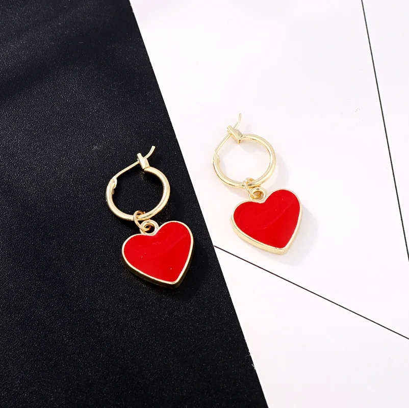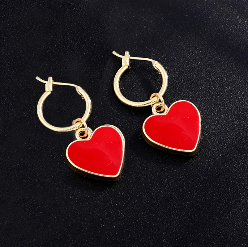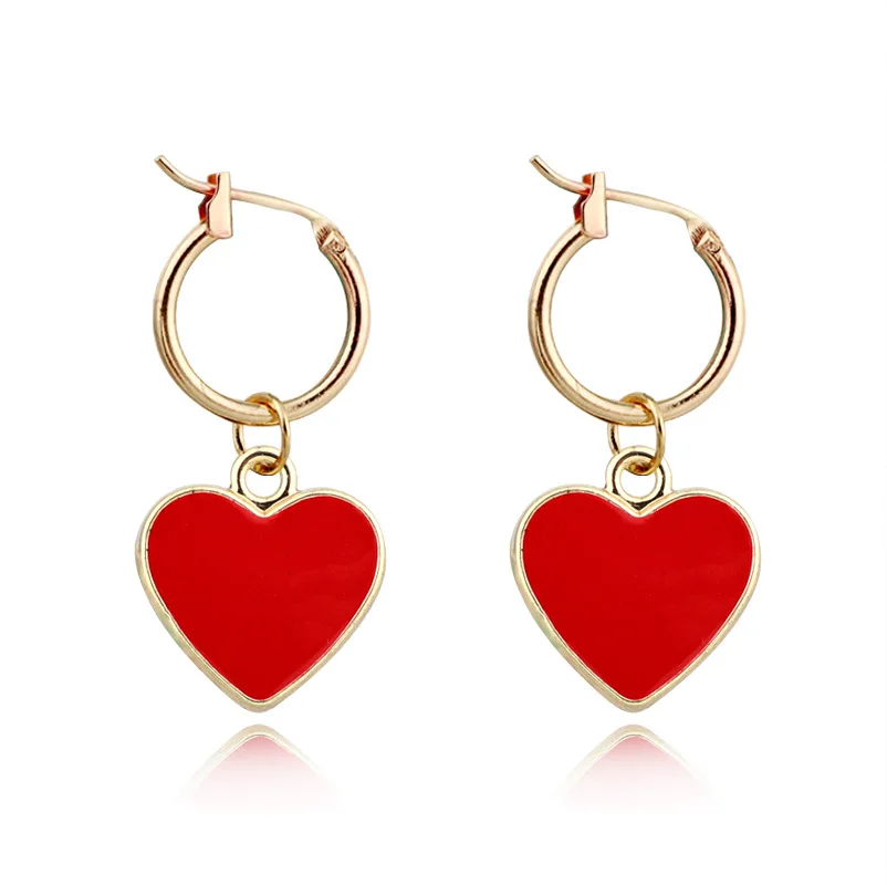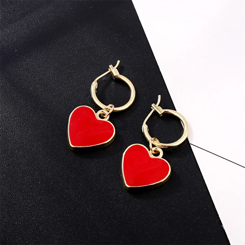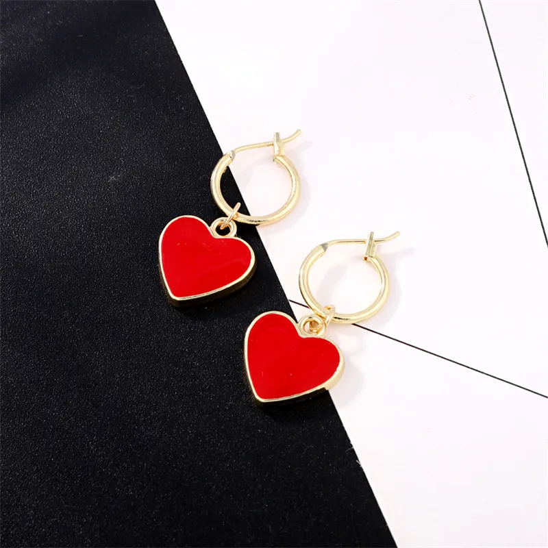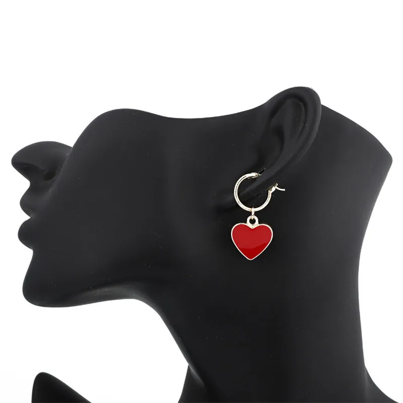 Парные серьги-кольца с красным сердцем для девушек, Подарочные женские ювелирные изделия, массивная подвеска, очаровательные металлические серьги для любви, Mujer Moda 2020