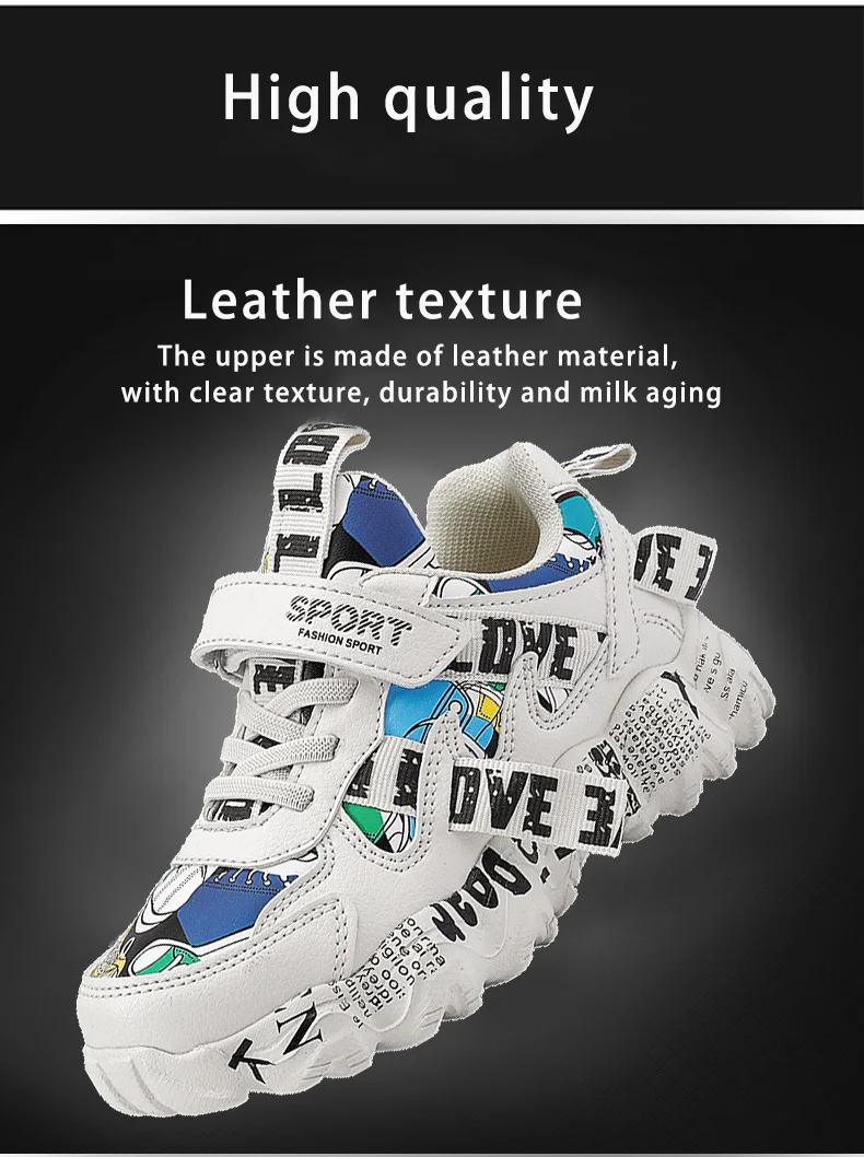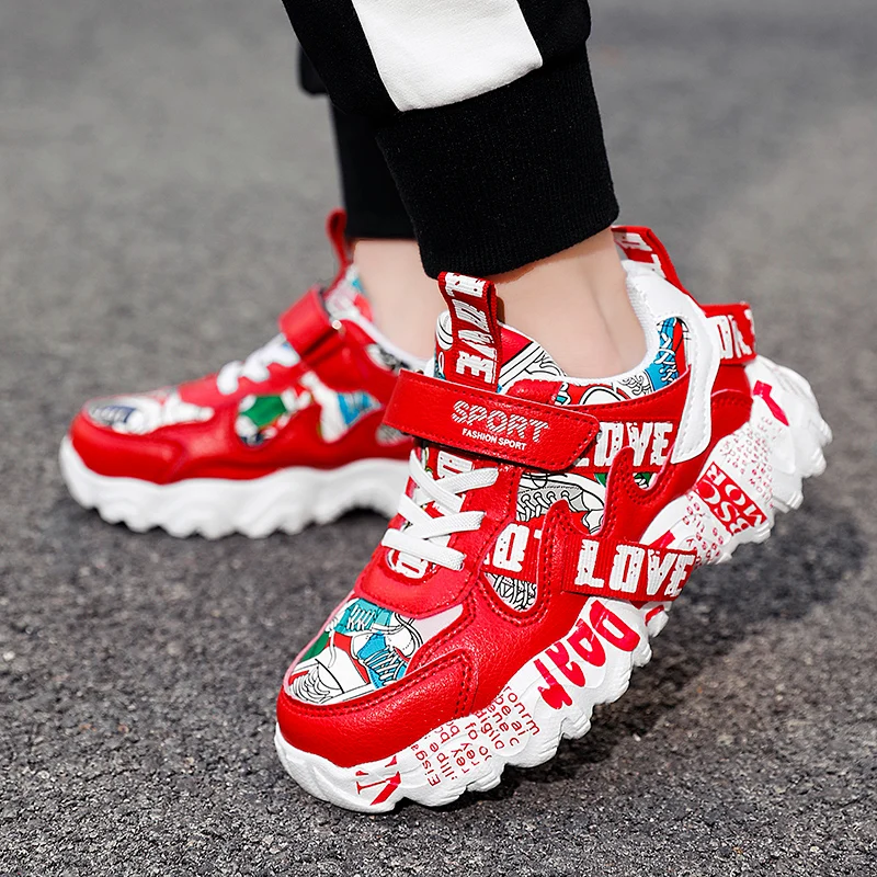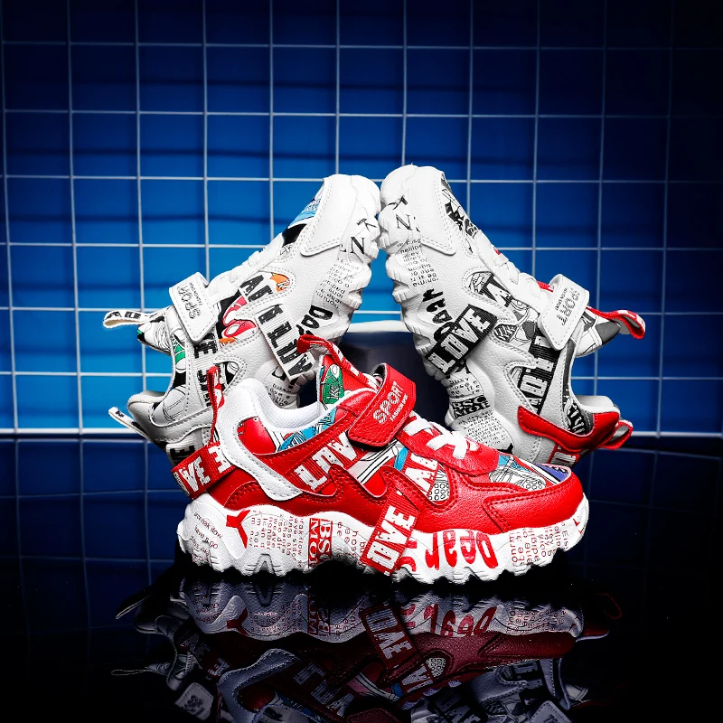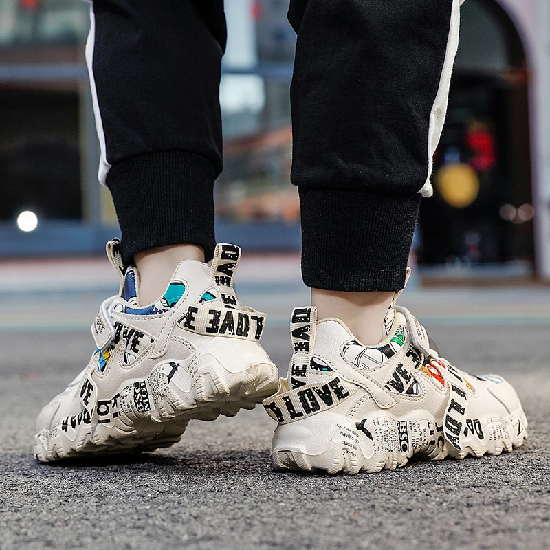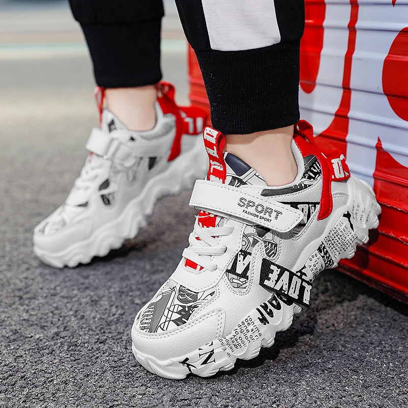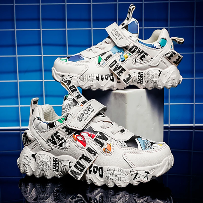 Кроссовки Детские массивные, спортивная обувь, повседневные кожаные легкие кеды для бега с граффити, белые, 2021