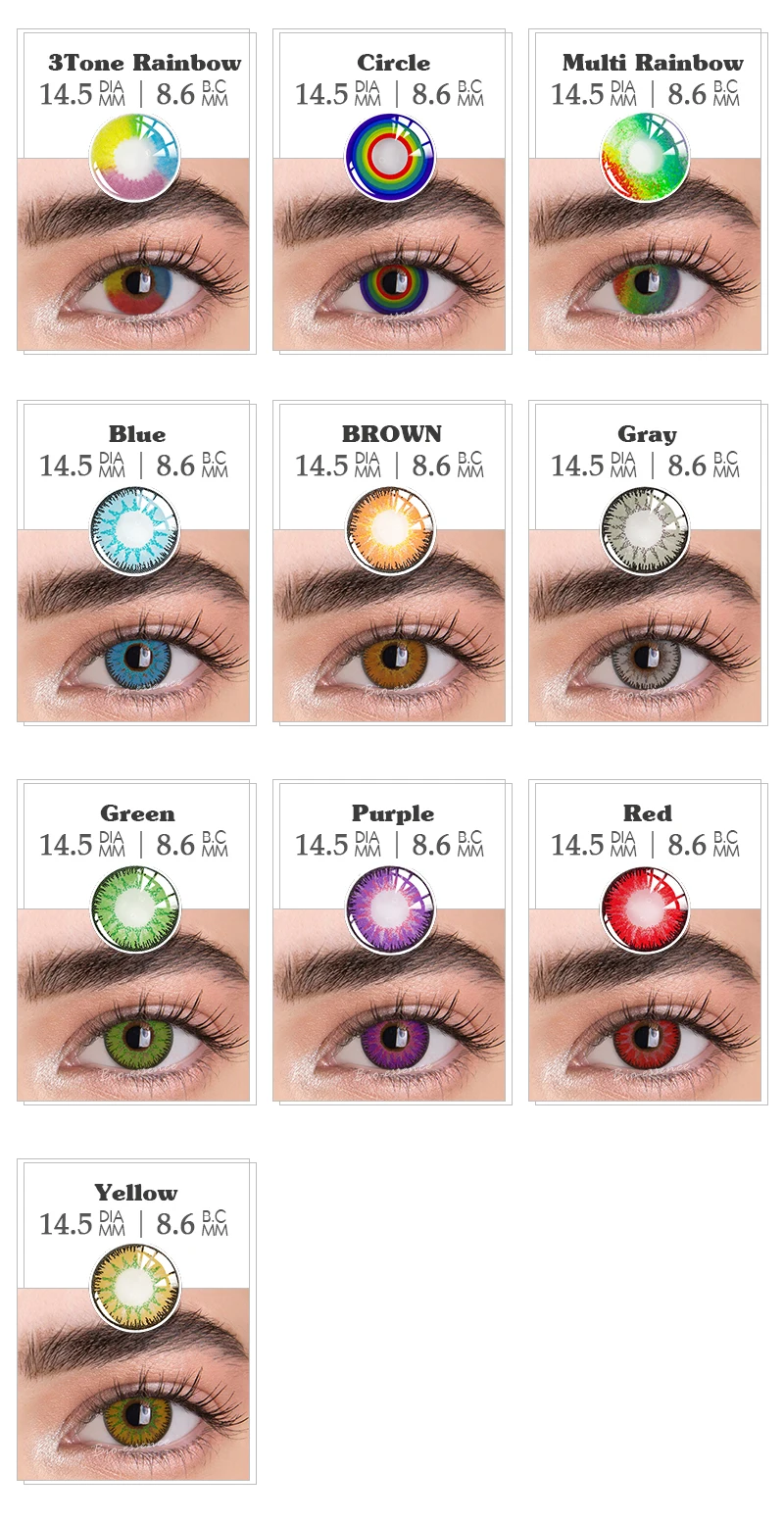 Это помогает изменить цвет учеников, делает ваши глаза больше и сделает вас более красивыми.Красивые вечерние, косплей, модное шоу, макияж на Хэллоуин и т. д.Безопасный, удобный и прочный, используется для 1 года.Модная и популярная среди девушек и женщин.Тип: цветные контактные линзыМатериал: гемаДиаметр: 14,0 ммОбъектив BC: 8,60 ммСодержание воды: 42%Цикл замены: 12 месяцевМощность: 0,00Посылка:1 пара * цветные контактные линзыПримечание:Линзы разных цветов будут отображать различные эффекты.Фотографии только для справки.