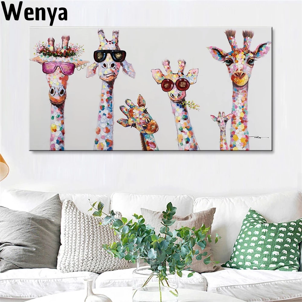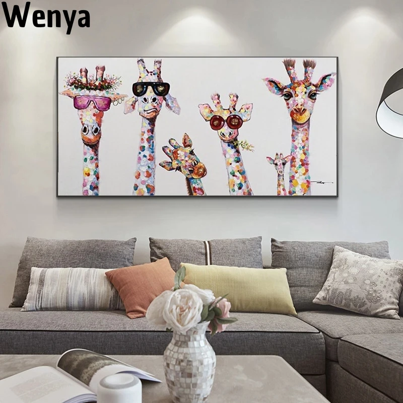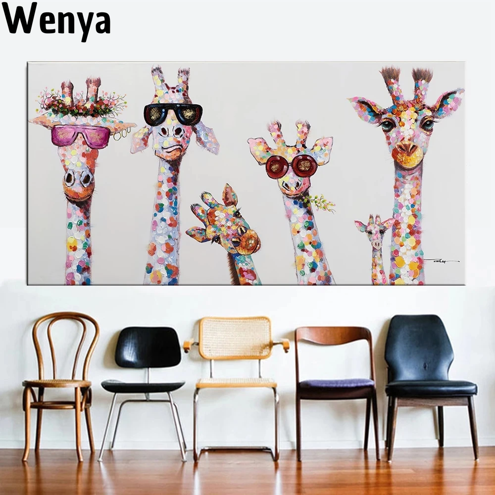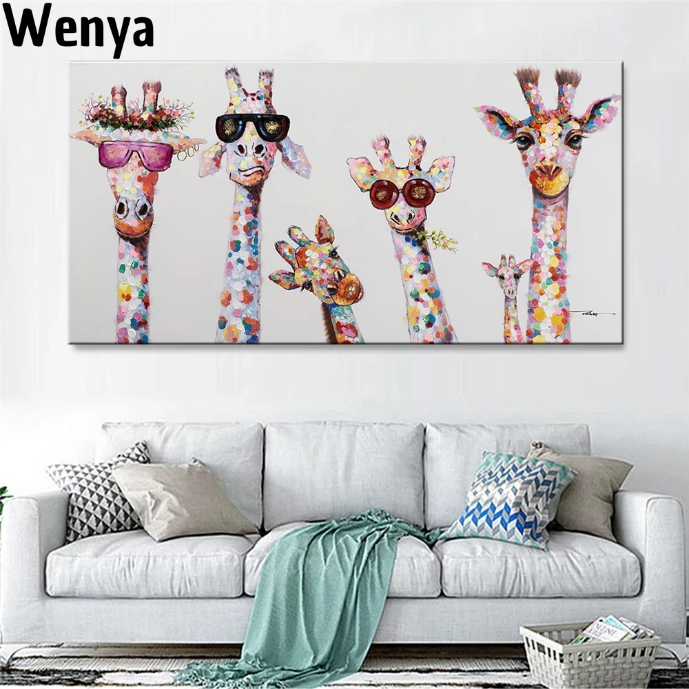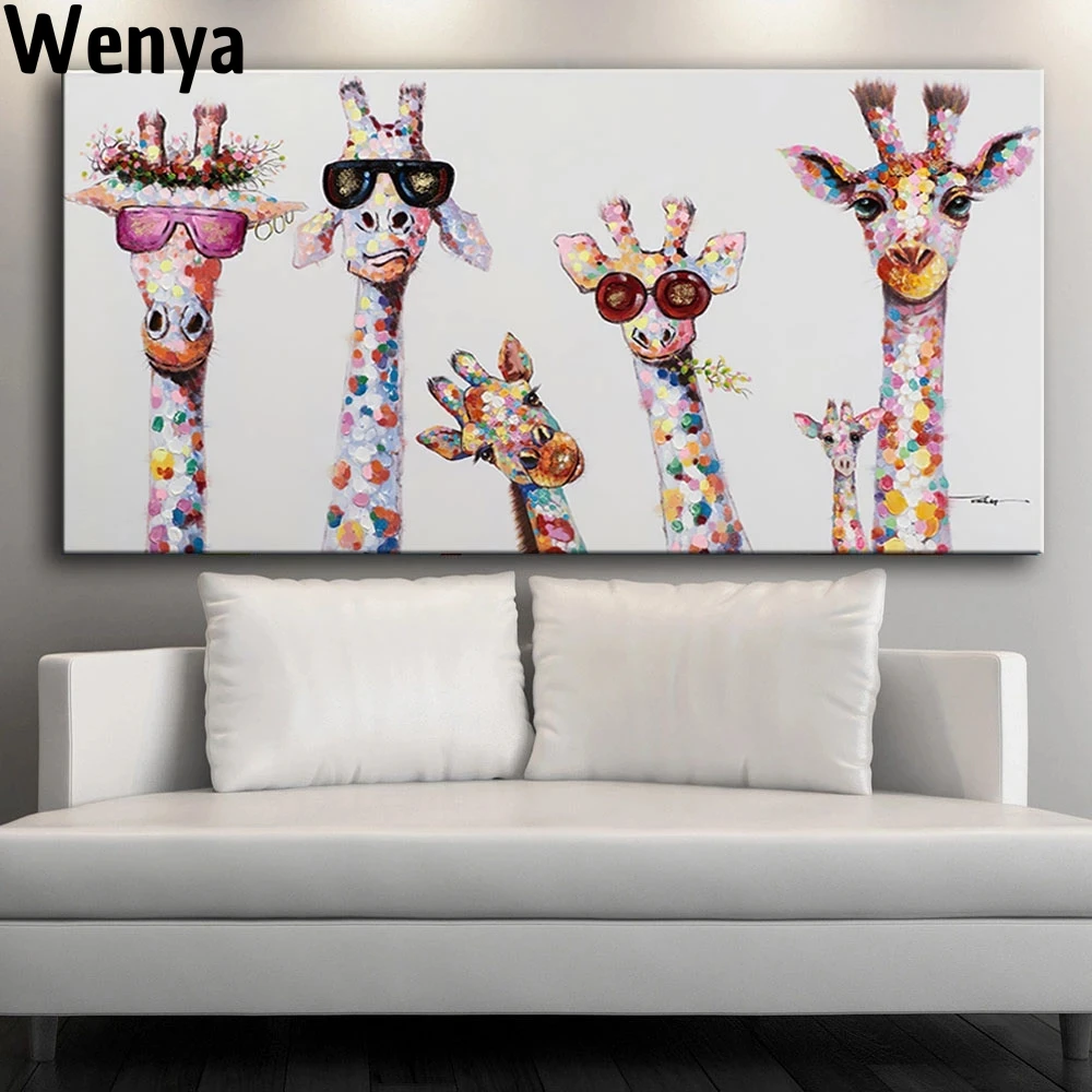 Детский плакат, забавная фотография, жираф, семья, граффити, Художественная Картина на холсте, Настенная картина для детской комнаты, дома