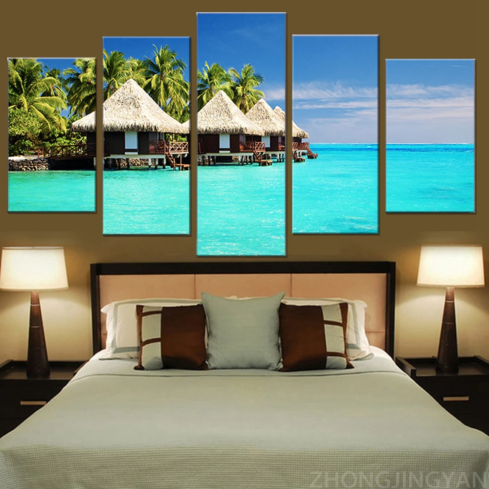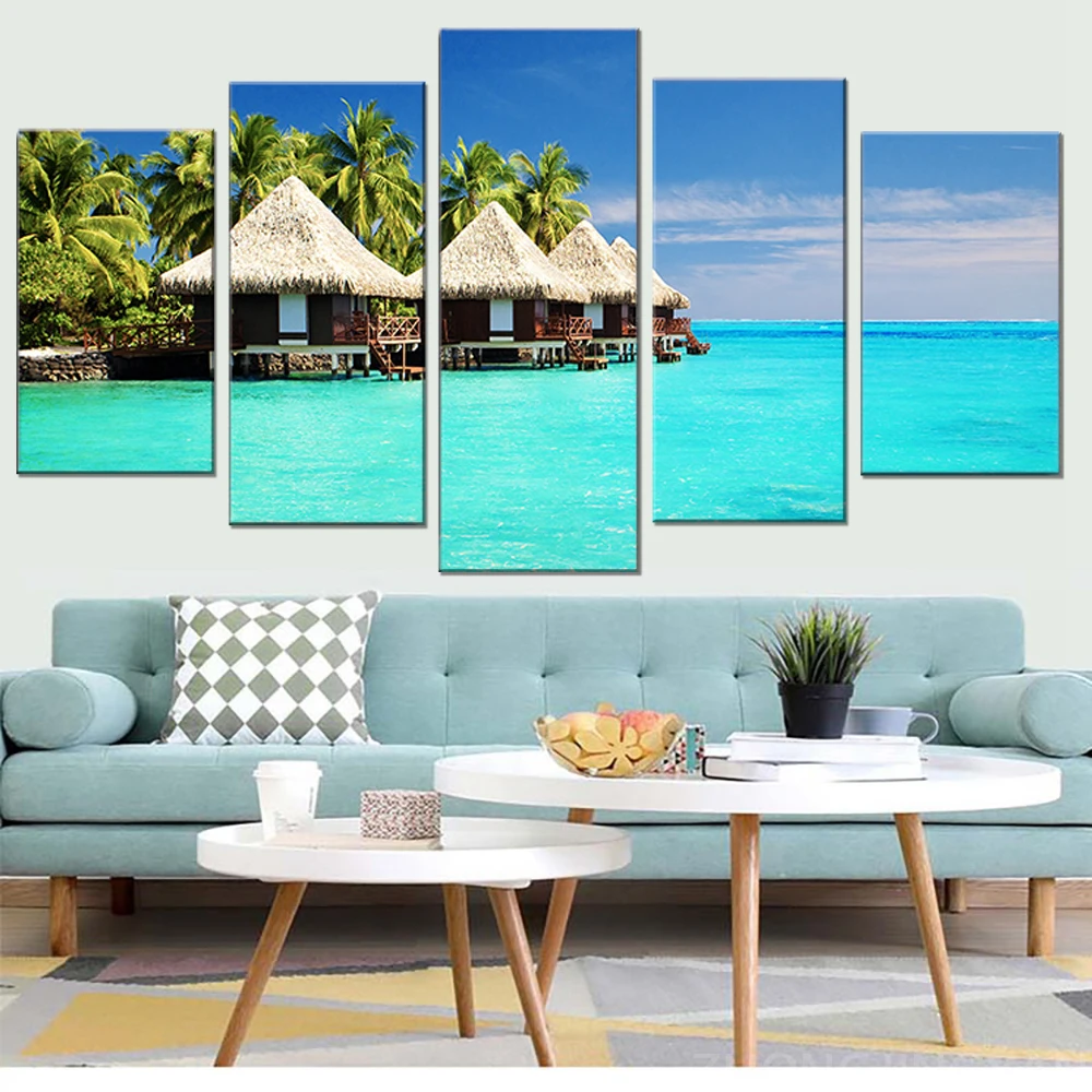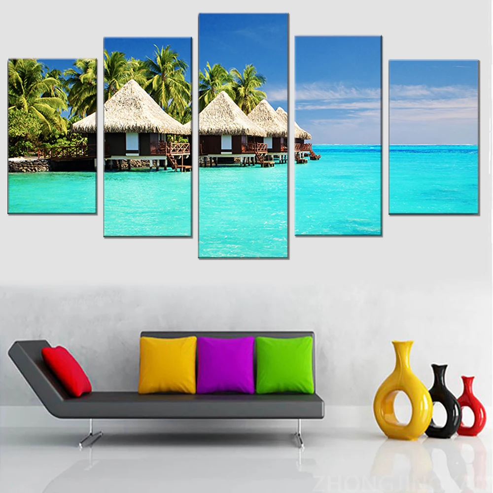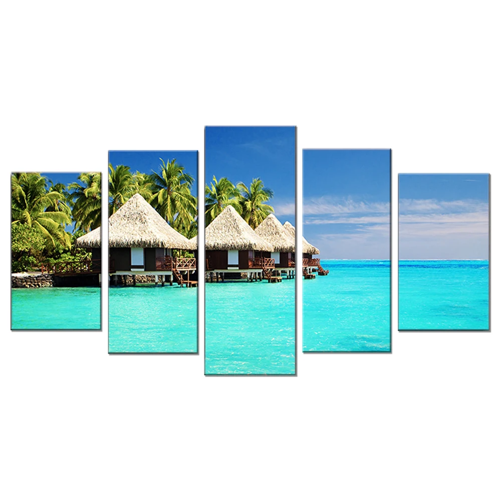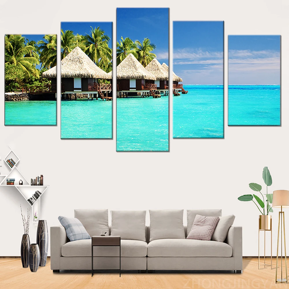 Картины на холсте для домашнего декора, настенные картины для гостиной, 5 шт., изображения Мальдивских Островов, пальм, принты, плакаты для пляжа и моря