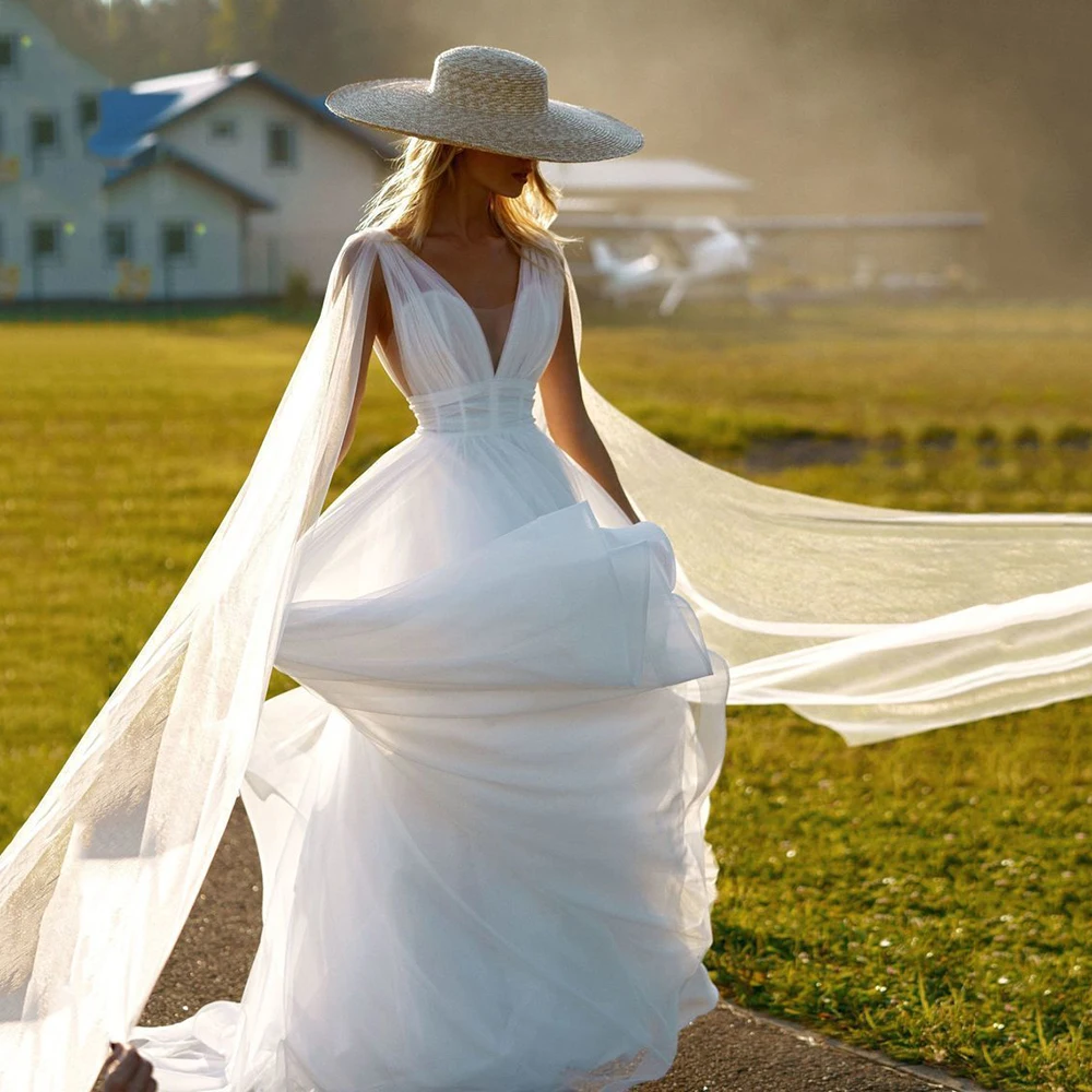 Свадебное платье UZN в стиле бохо, ТРАПЕЦИЕВИДНОЕ ПЛАТЬЕ ИЗ ТЮЛЯ С V-образным вырезом и пуговицами, модель 2021 плечо без рукавов, индивидуальный пошив, богемное свадебное платье, платье для невесты