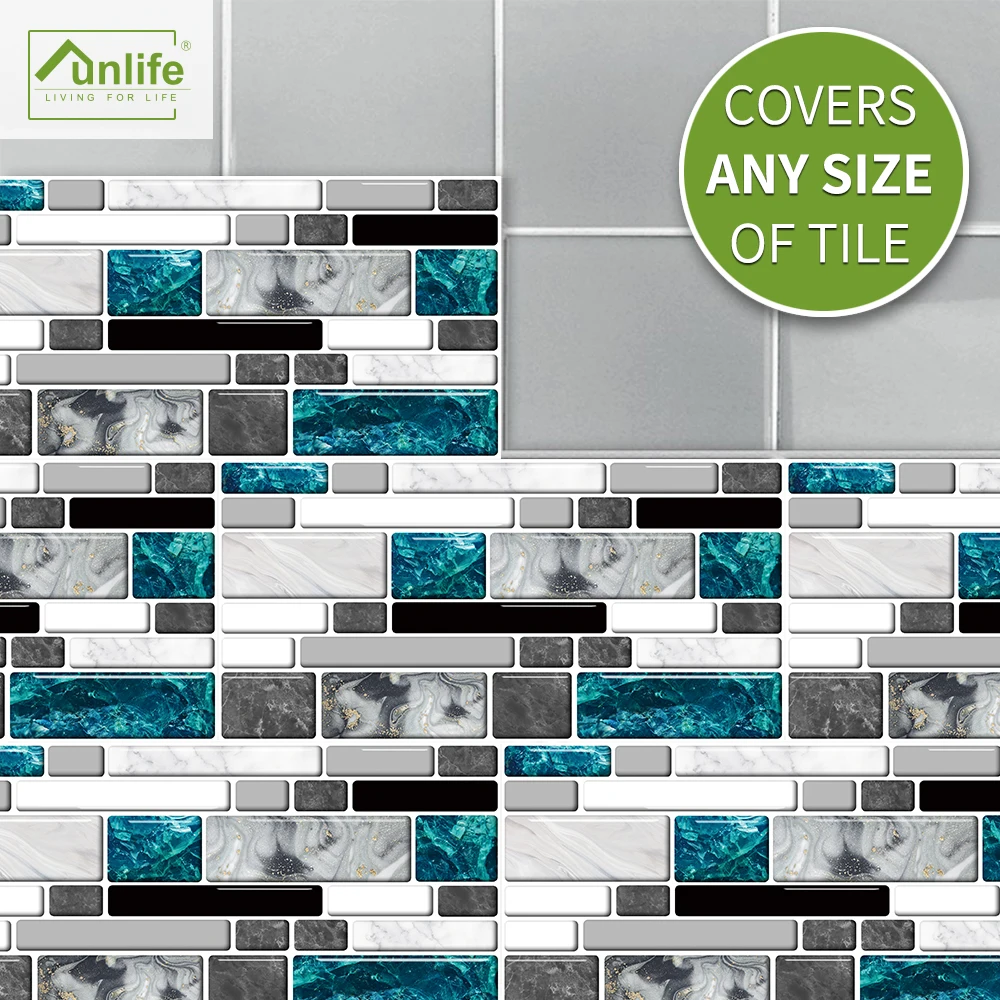 FunlifeНаклейка на плитку из серого агата и синего стекла, декоративные самоклеящиеся легко моющиеся обои для ванной и кухни