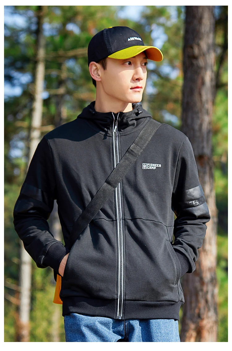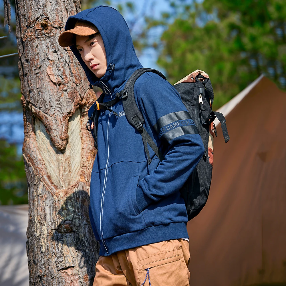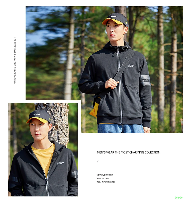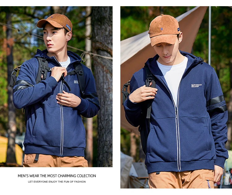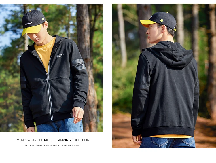 Куртка мужская на молнии, черная, синяя, с капюшоном, XLW023191, весна 2021