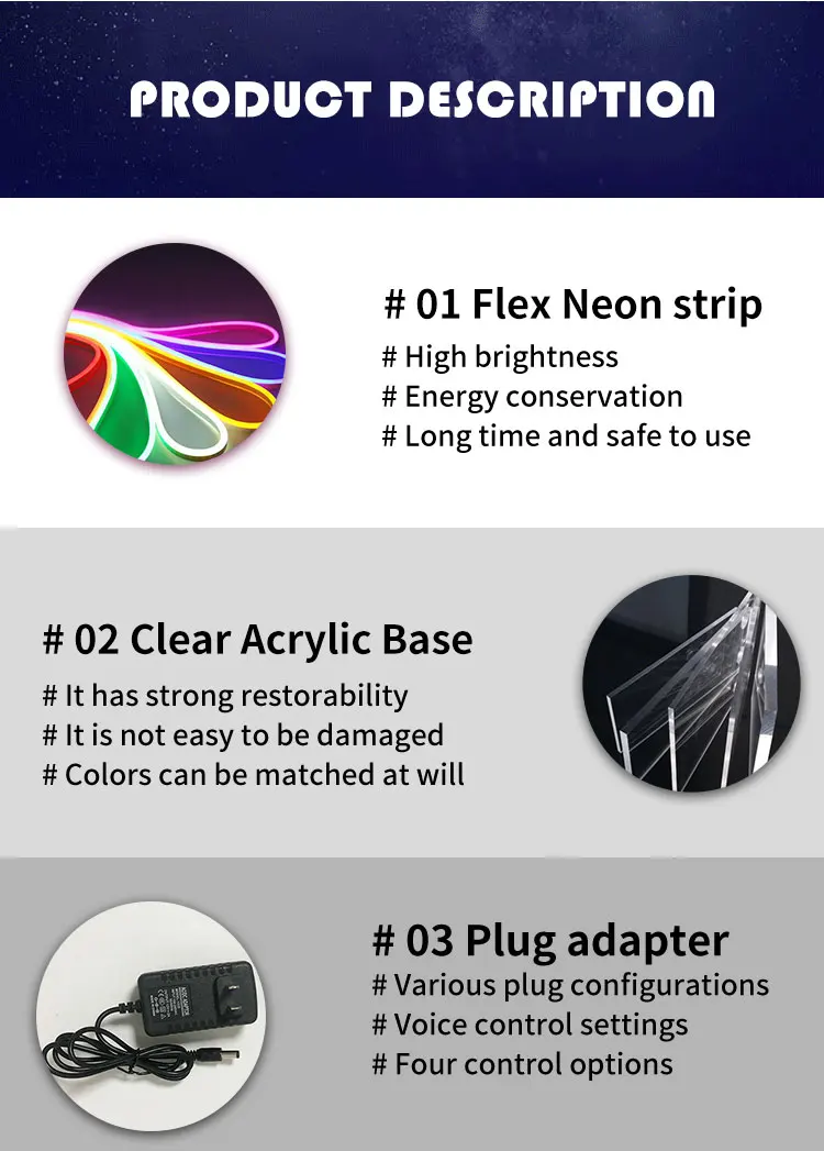 ХарактеристикиLed Flex Transparent Acrylic Neon Sign