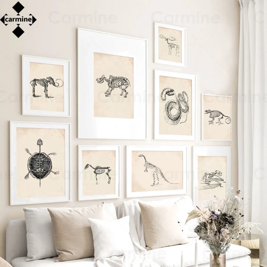 Картины с имитацией древнего животного, минималистичные искусственные картины, динозавр, черепаха, Рино, лось, Настенная картина для декора гостиной