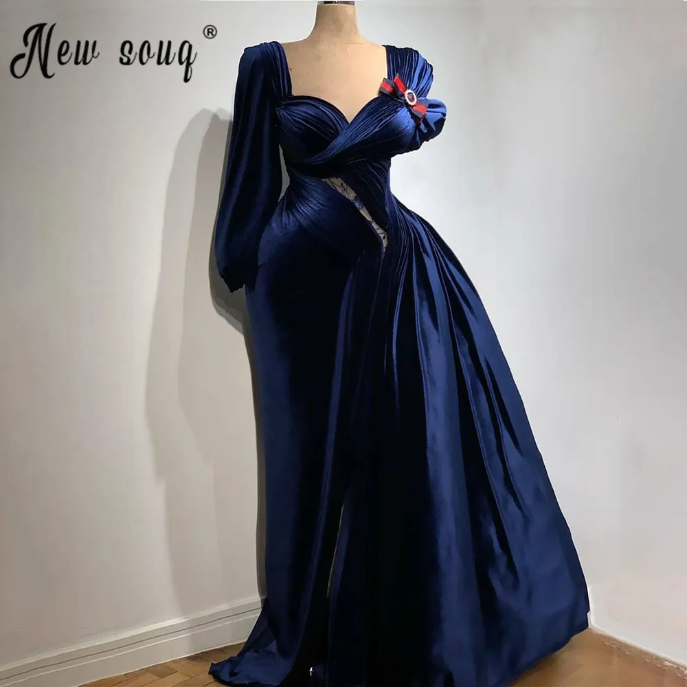 Мусульманское бархатное длинное вечернее платье знаменитости, темно-синее платье с длинным рукавом и оборками, бальное платье знаменитости в Аравийском стиле для выпускного вечера