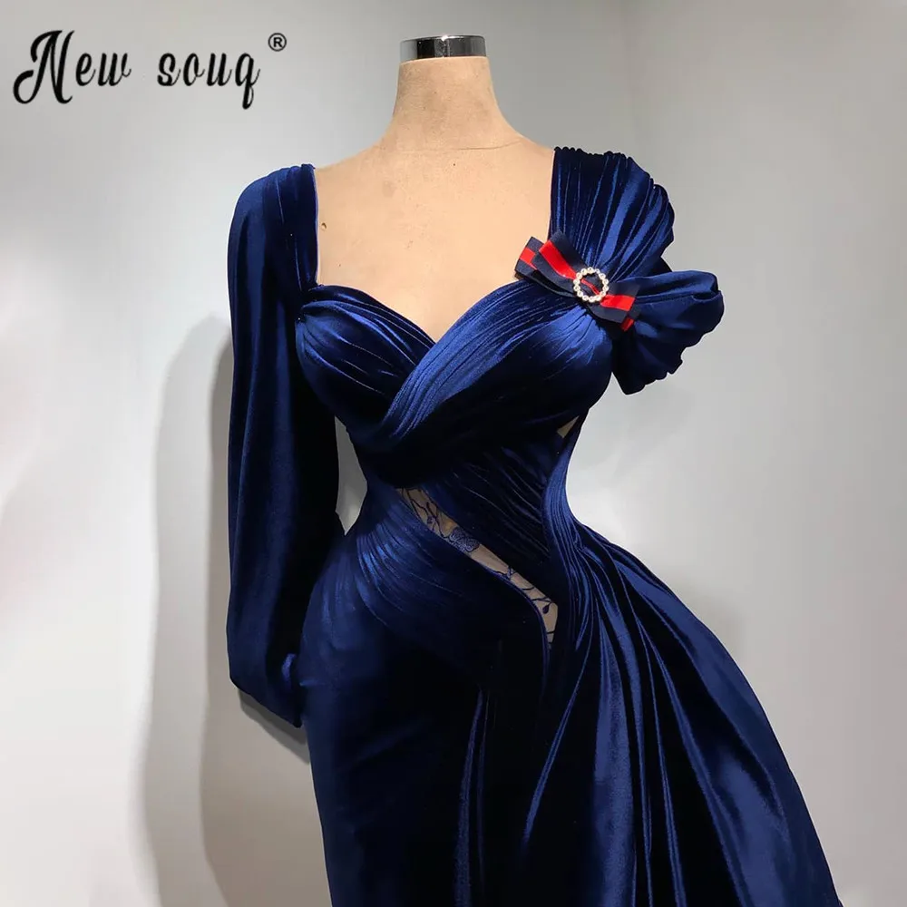 Мусульманское темно-синее бархатное вечернее платье, длинное платье русалки с длинным рукавом, с оборками, в стиле Звезд, Аравийское официальное платье для выпускного вечера, 2021