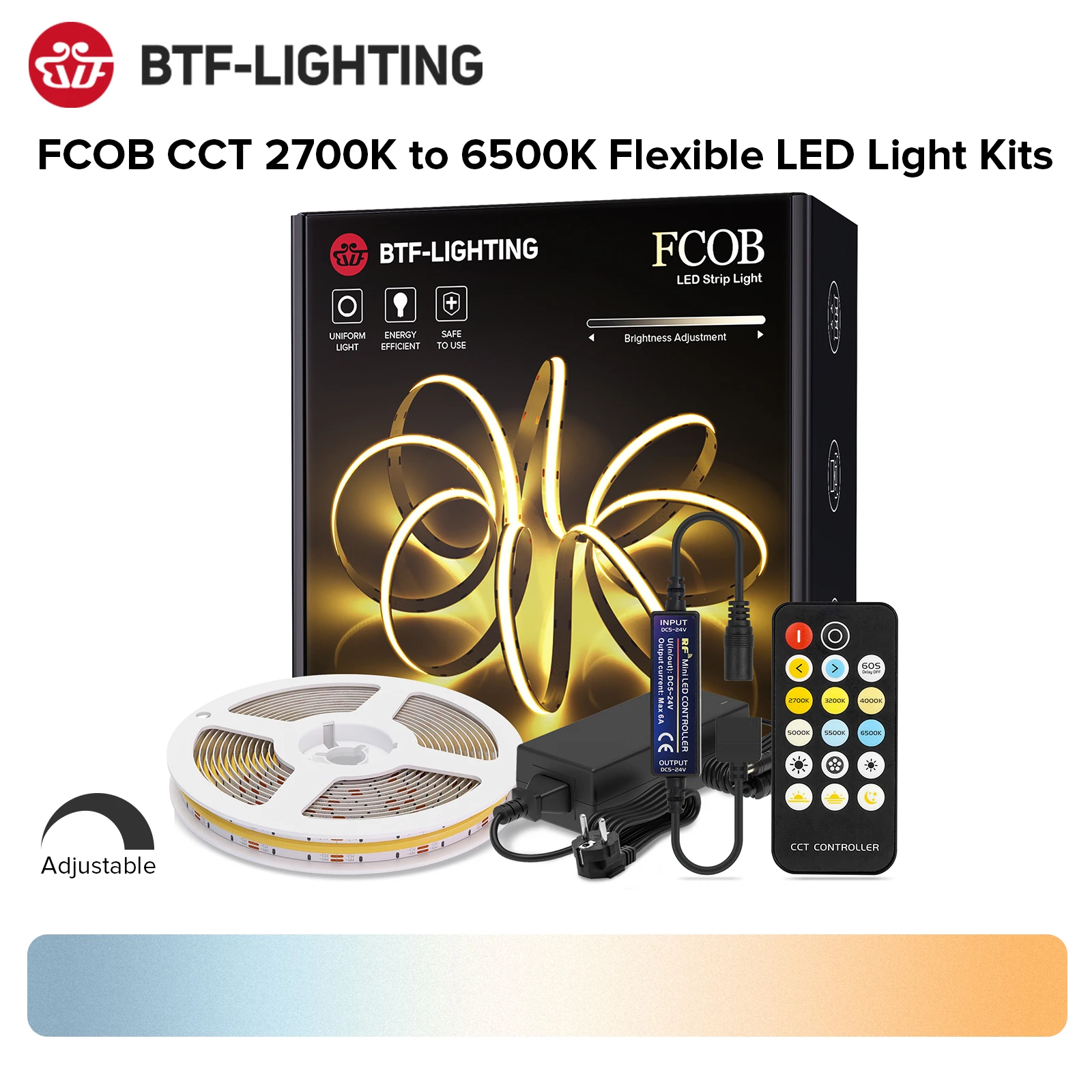 Приглушаемая светодиодсветильник лента FCOB CCT с 17 клавишами, полный комплект, гибкая LED полоска с COB матрицей высокой плотности, теплый белый с белым DC 24 В