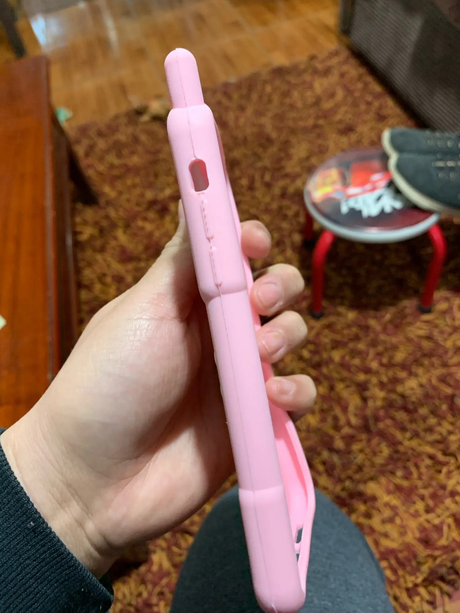 Сам чехол как на картинке, только думала что силикон будет толще. 4 потому что неудобно держать в руке, выскальзывает.