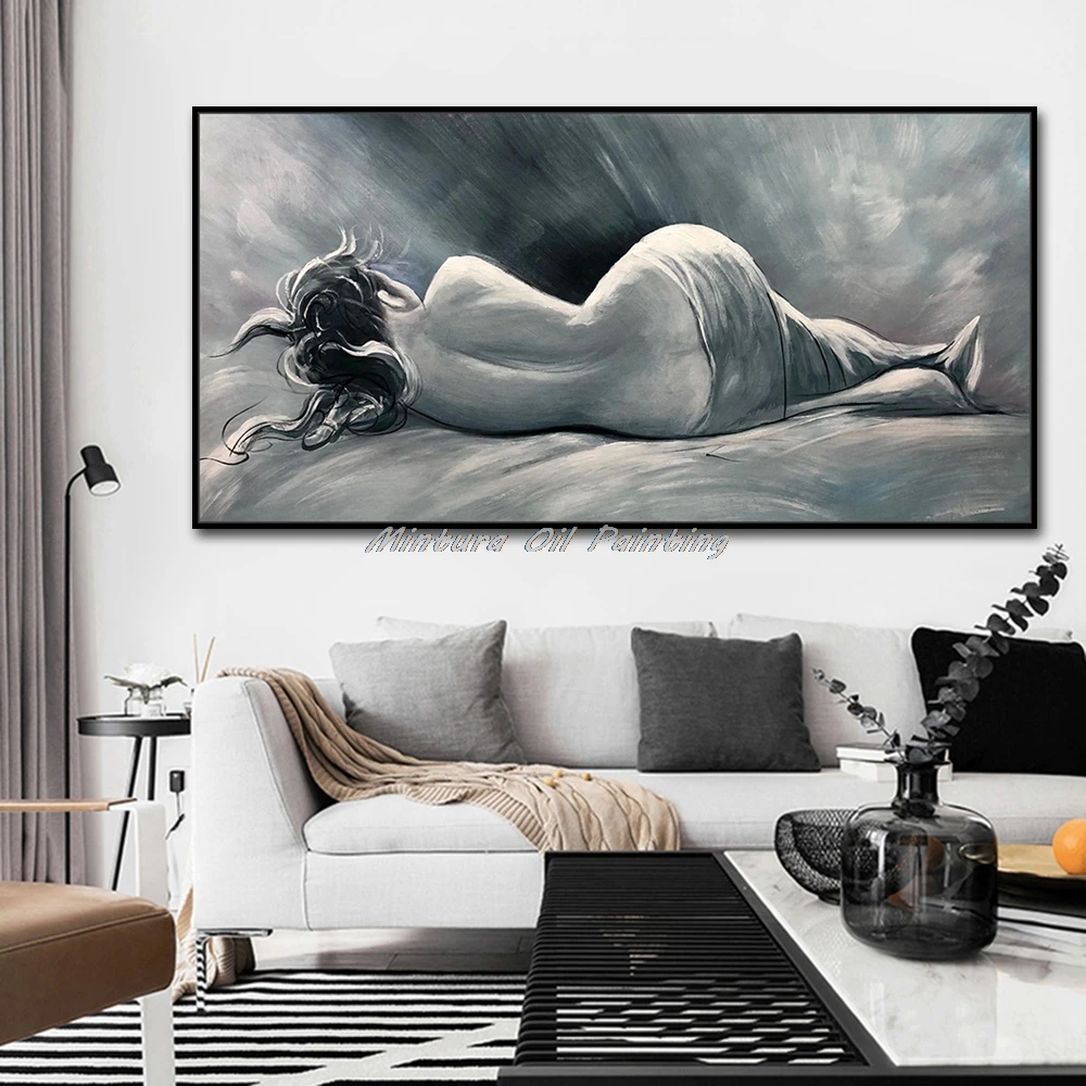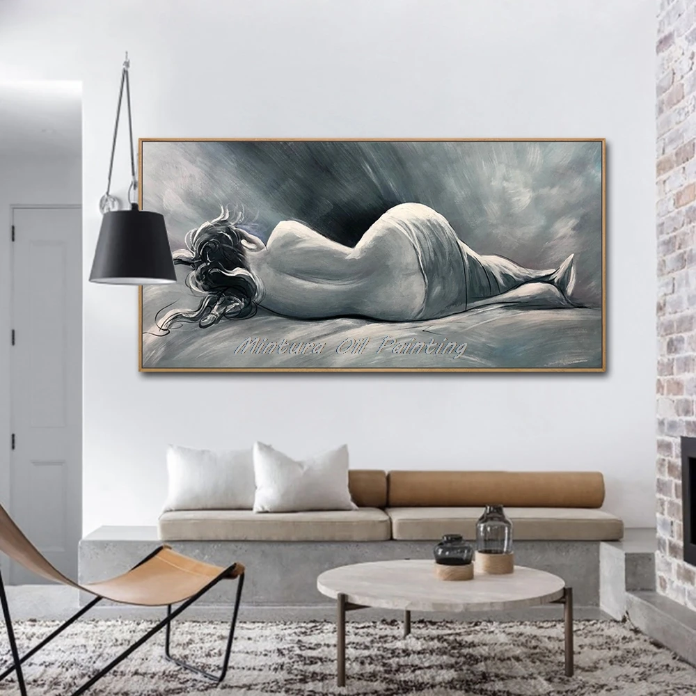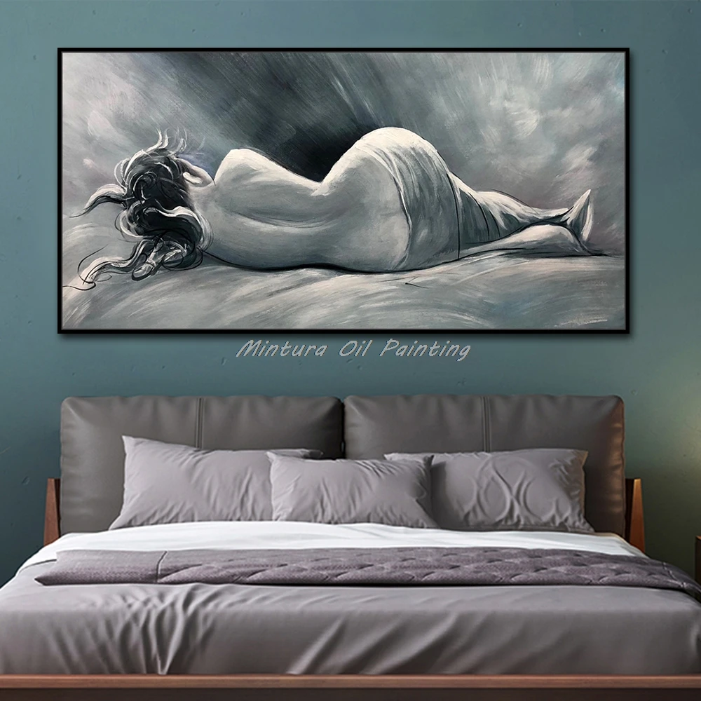 Картина на стену Mintura для гостиной, Масляные картины на холсте, ручная роспись женщины в кровати, украшение дома, настенная живопись, без рамки.