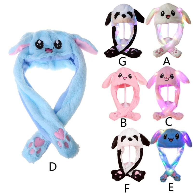 Милая плюшевая шапка кролик свинка животное подушка безопасности движущиеся прыгающие уши игрушка подарок шапка с лапой