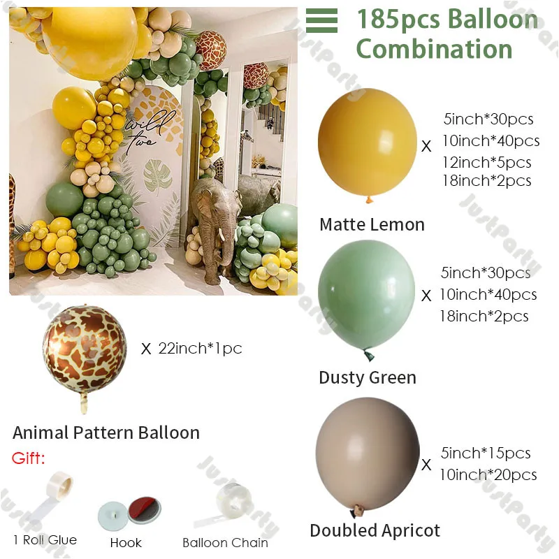 185 шт. матовая лимонная гирлянда из воздушных шаров комплект животных украшение на день рождения пыльно-зеленый двойной абрикосовый воздушный шар арочный набор декор для детского душа