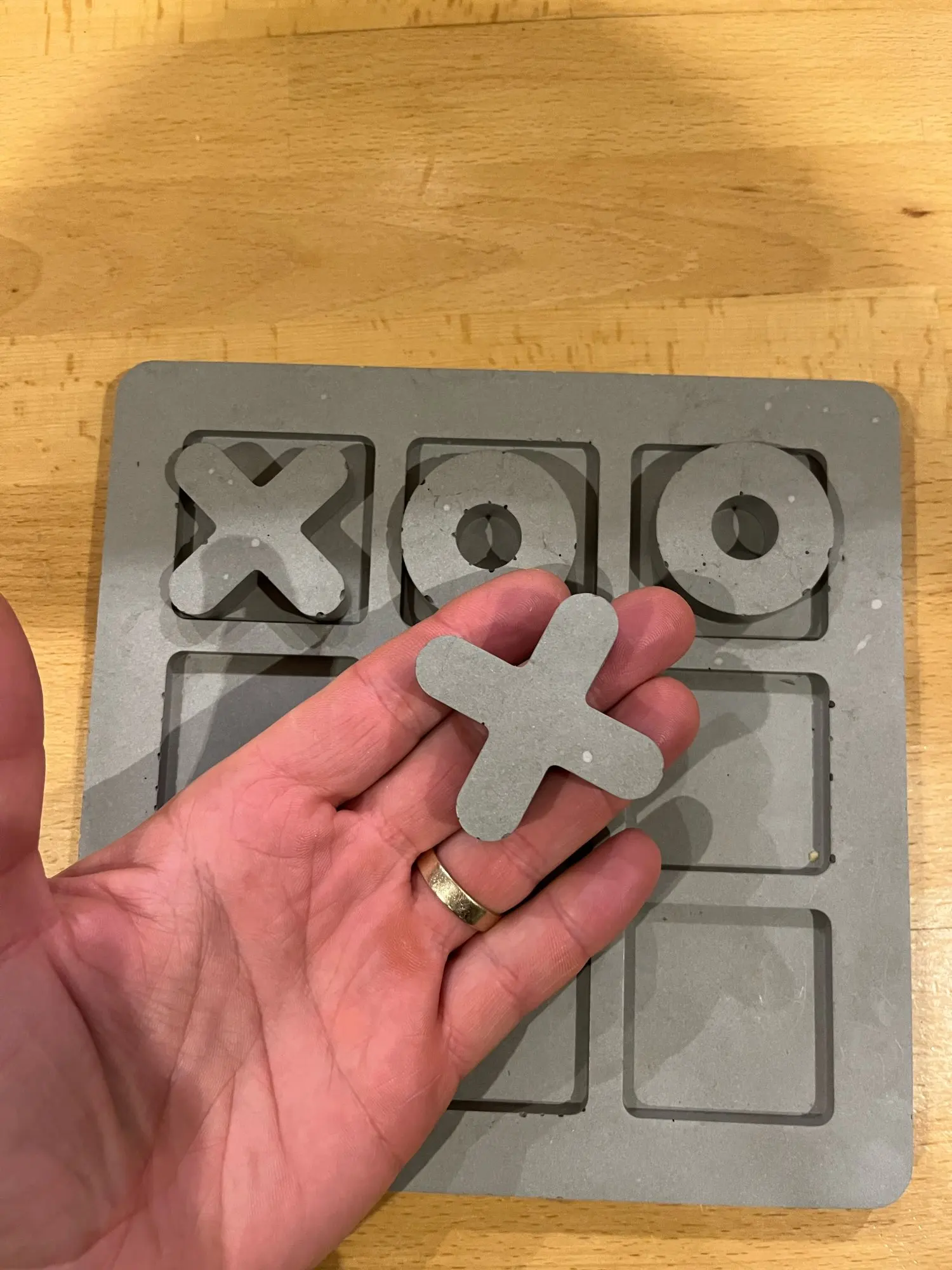 Но он очень тонкий. Подходит для смолы, но не для бетона, так как формы легко ломаются из-за толщины. Форма должна иметь 3 X и 3 O, чтобы соответствовать игре. Я не обращал внимания на эту деталь при заказе.