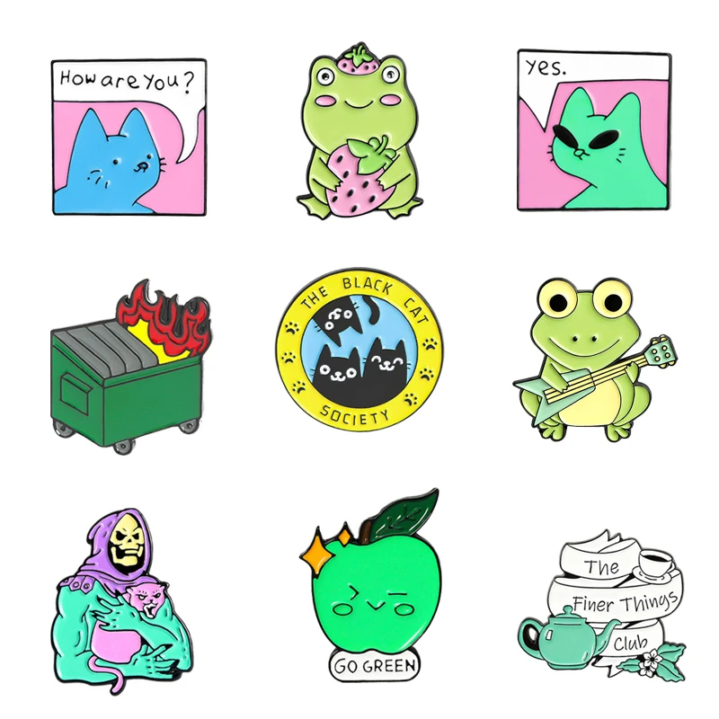 Эмалированные заколки в виде мультяшной лягушки, синий кот, иноплан...