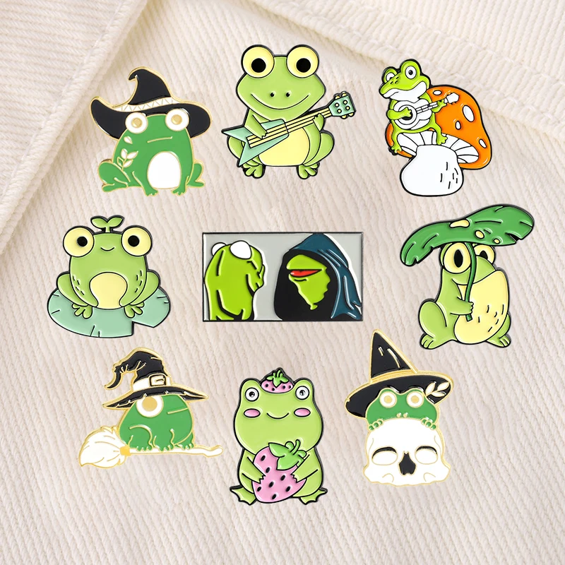 Детская эмалированная заколка в виде лягушки, шляпы ведьмы спасения земли, любознательного кота, значка демона, броши с черепом для сумки, значка на лацкан, ювелирные изделия, подарки для детей