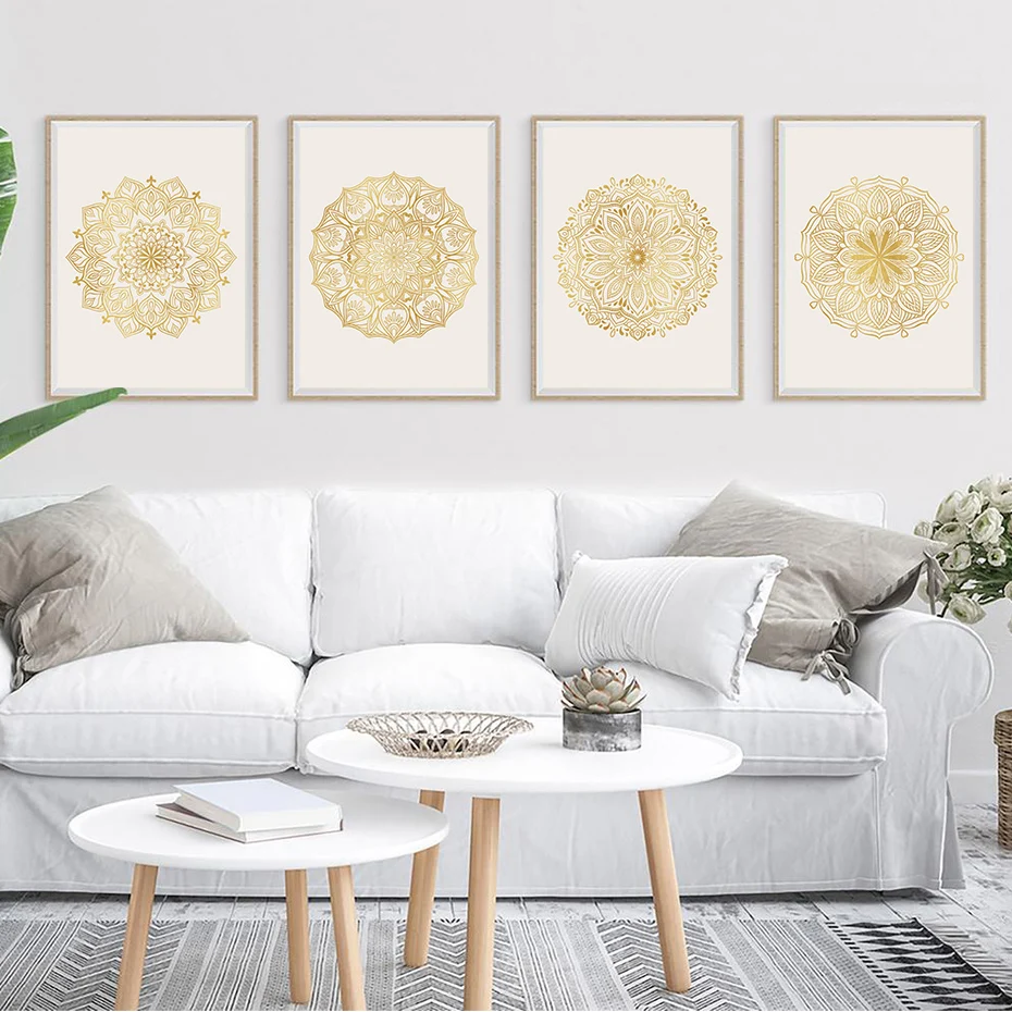 Богемная Мандала Цветочный золотой современный постер Холст Картина настенный художественный принт картины для гостиной дзен, йога домашний интерьер Декор