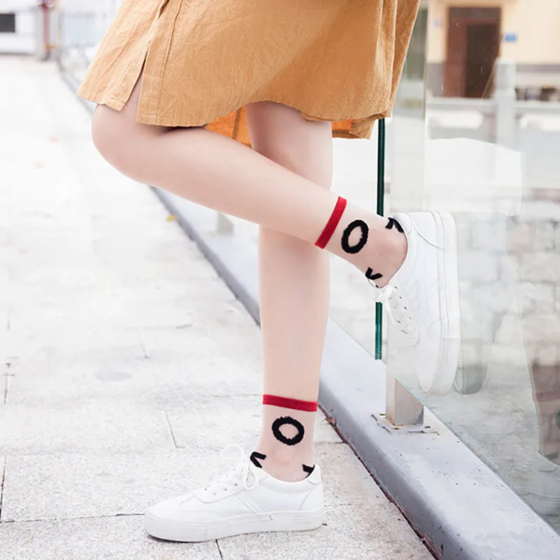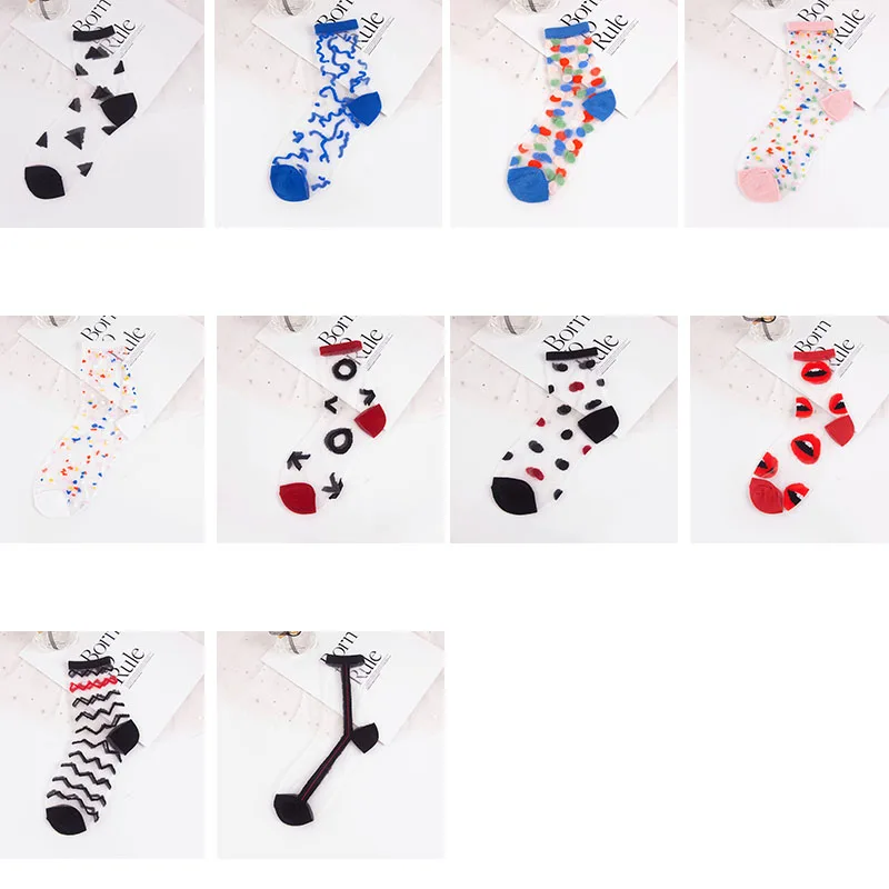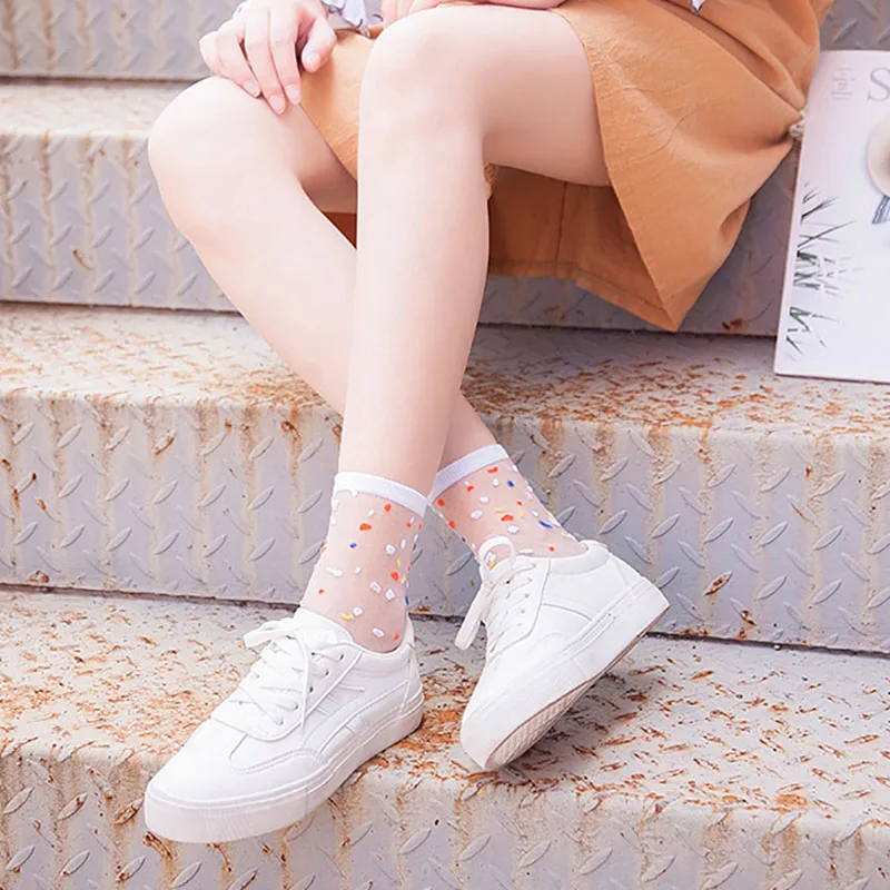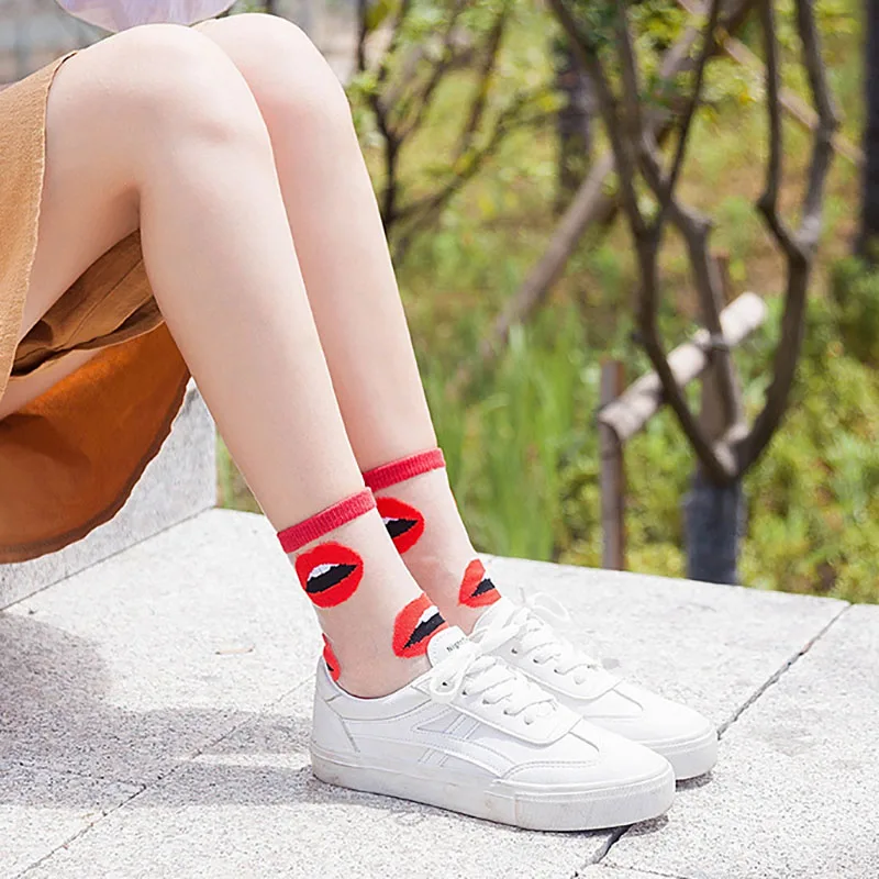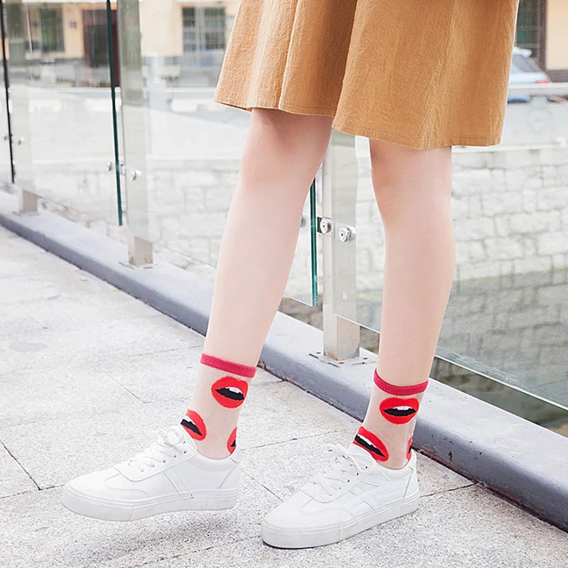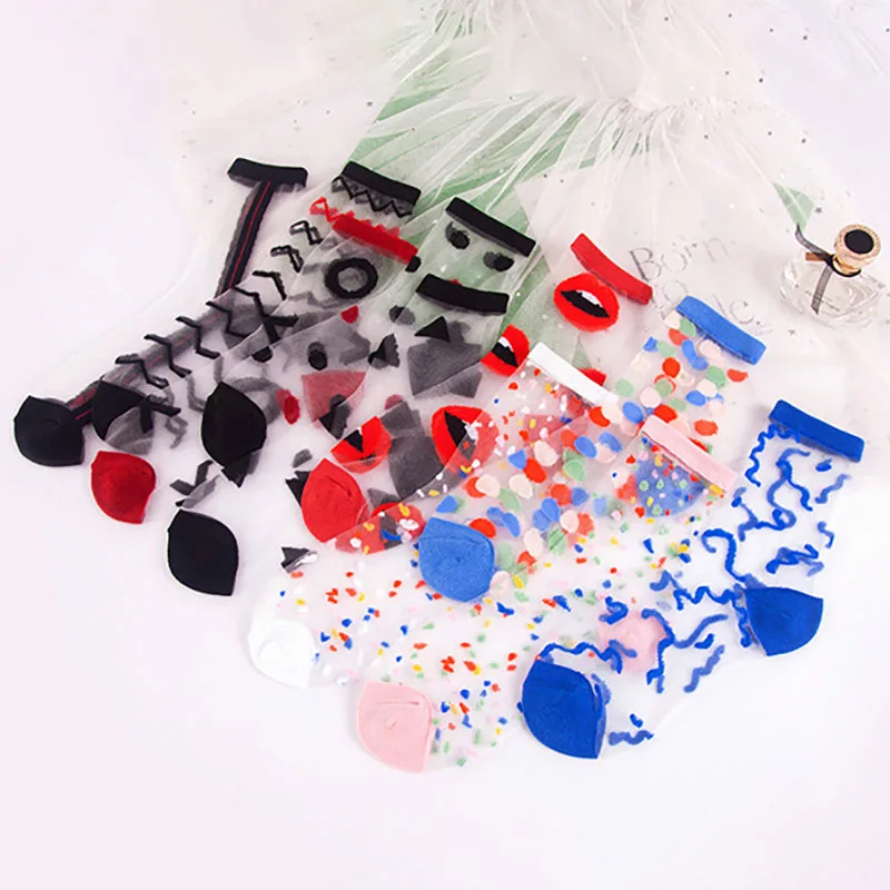 Q: 1 пара нейлон волнистым узором носки-трубы средней высоты в стиле Харадзюку из пряжи и тюля, носки по щиколотку, прозрачный Стекло Шелковый Ретро в Корейском стиле носки для Kawaii Для женщин