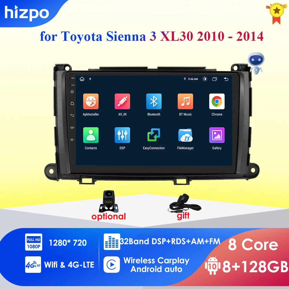 Android 10 IPS 9 "автомобильное стерео радио GPS-навигатор плеер для Toyota Sienna 2009 2010 2011 2012 2013 2014 мультимедийный Головной блок 4G