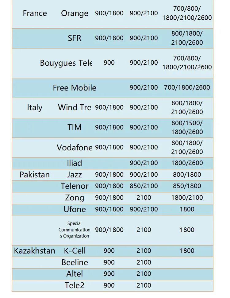 Подключение: 1710-1785 МГцDownlink: 1805-1880 МГцКоэффициент усиления: 70 дБОн может увеличить сеть 4g в Европе и Азии. Это может повысить голос звонков для некоторых регионов Европы и Азии.