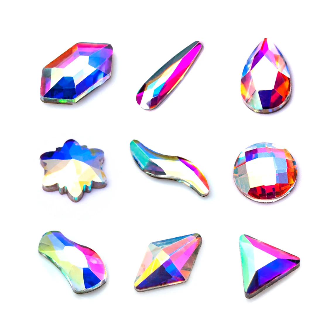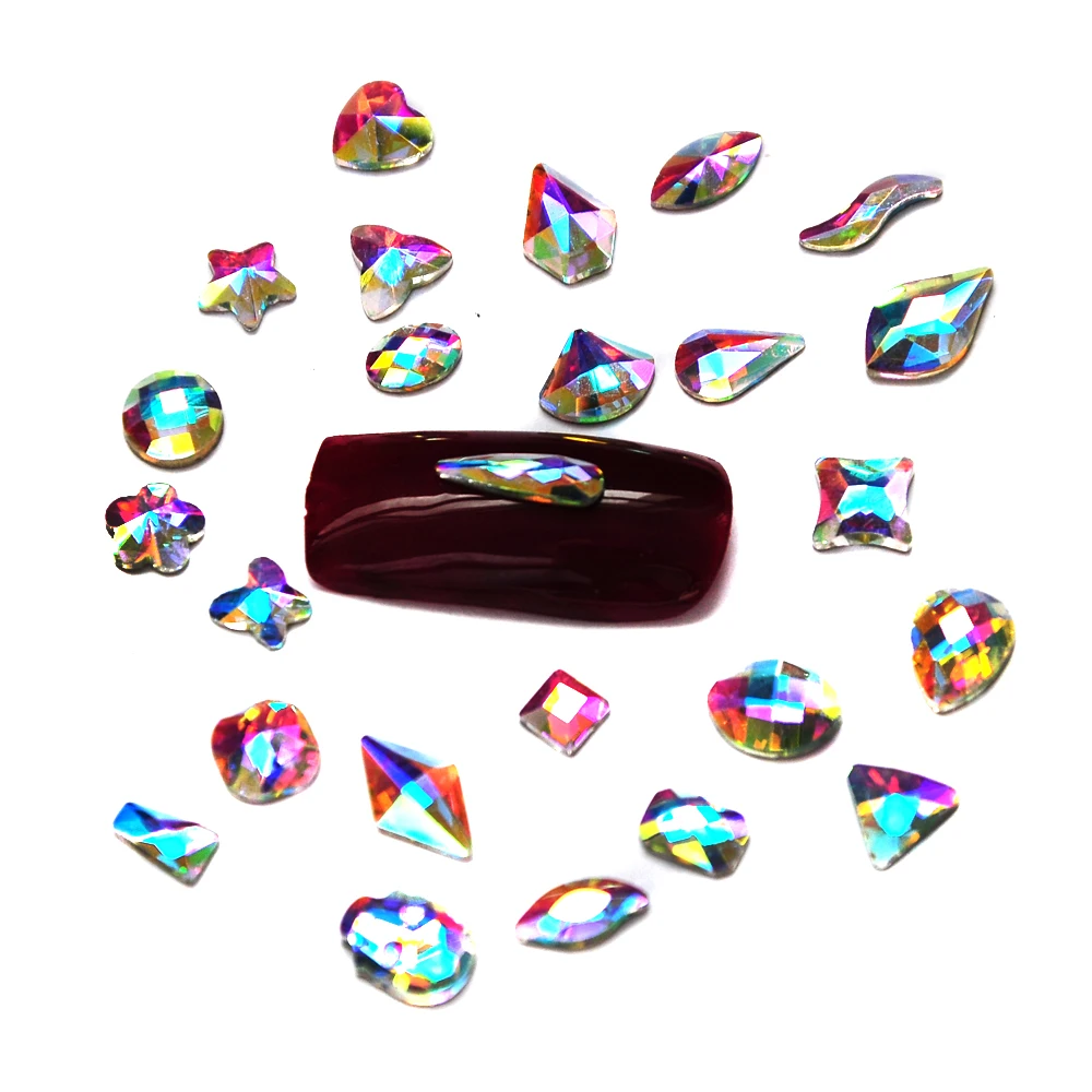 20 штук Модные ногти кристаллические стразы АВ радужных ногтей Mix Форма нарядное Форма d стеклянные камни для 3D нейл-арта украшения