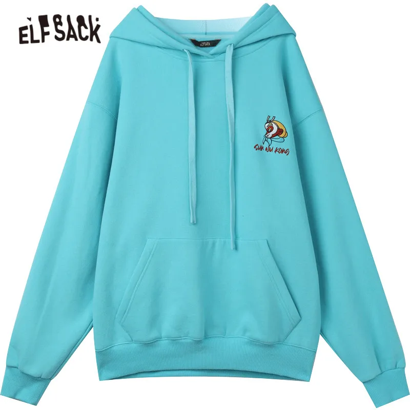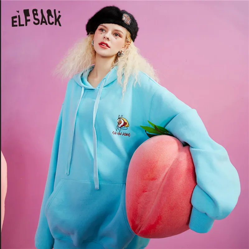 Женская толстовка с вышивкой ELFSACK Monkey King, Повседневная Толстовка Оверсайз с длинным рукавом, корейский Повседневный Топ-Тедди для весны, 2021