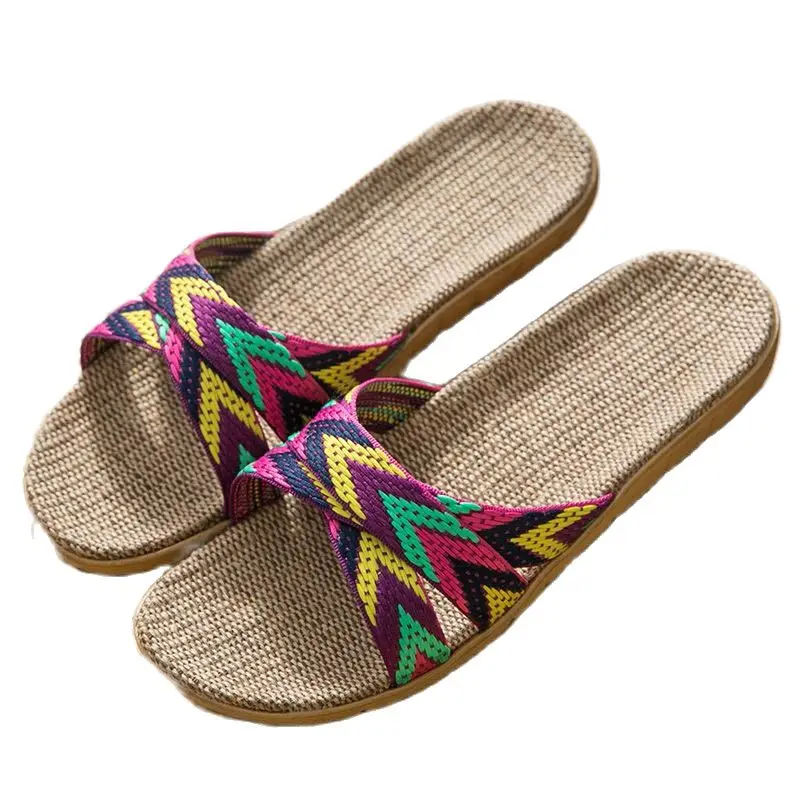 Тапочки льняные Suihyung для женщин, домашняя обувь, сланцы, перекрестные шлепанцы, повседневные сандалии, лето 2021