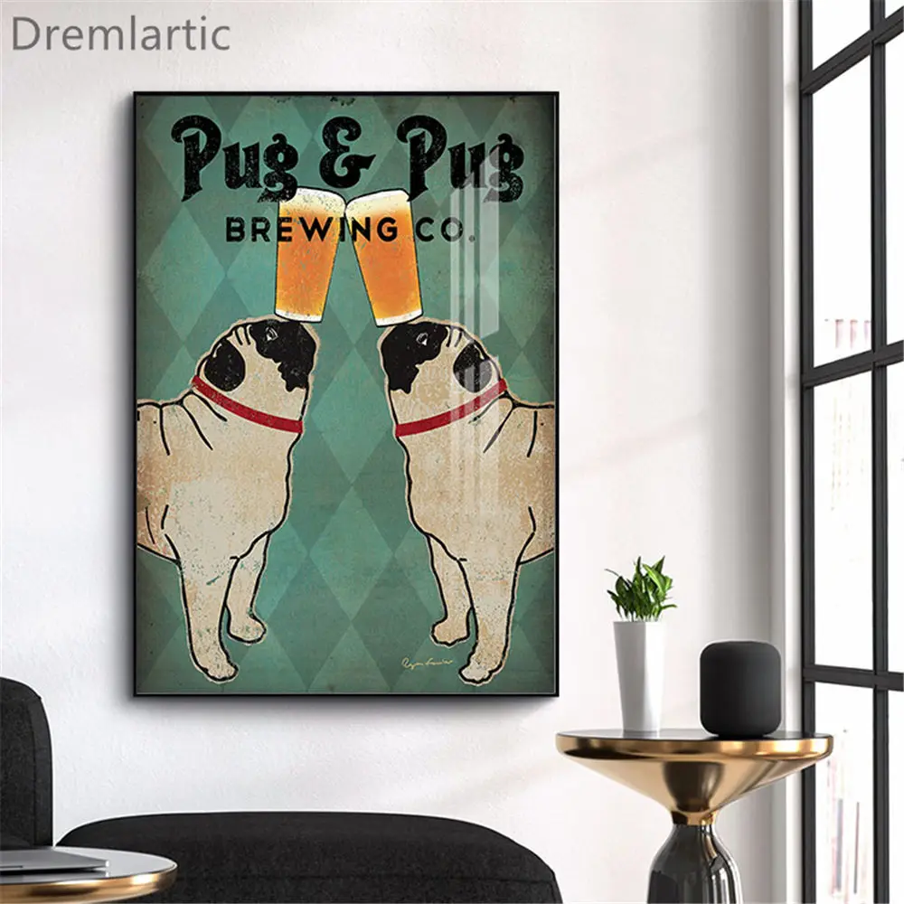 Животные Мопсы холст фотообои современный стиль печать вечерние домашний декор комната #20-1005-43-45