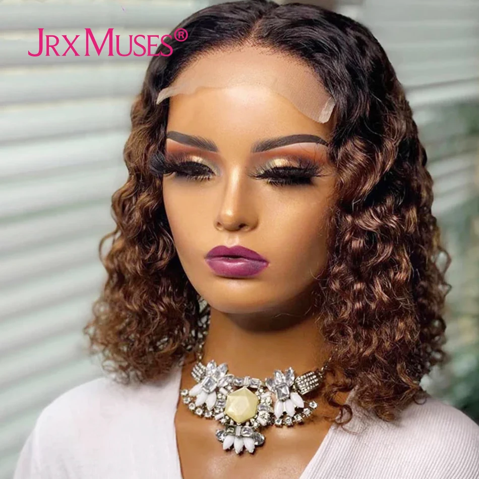 Парик Auburn из натуральных волос на фронтальной сетке 13x6 T-образный с эффектом омбре 1B 30, волнистый кудрявый парик Боб, Т-образный парик с темными корнями для чернокожих женщин