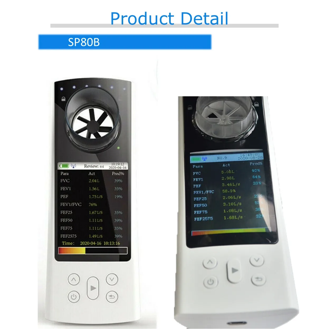 Спирометр небольшой по объему, низкое энергопотребление, удобный в эксплуатации и портативный для carmy. Он может измерять принудительную жизнедеятельность (FVC), жизнедеятельность (VC), максимальную автоматическую вентиляцию (MVV) и относительные параметры, отображение в режиме реального времени кривая потока волны дыхания и громкости, высокая точность и повторяемость.