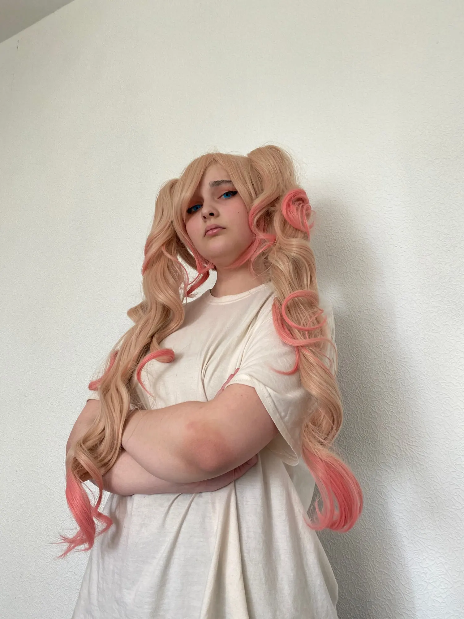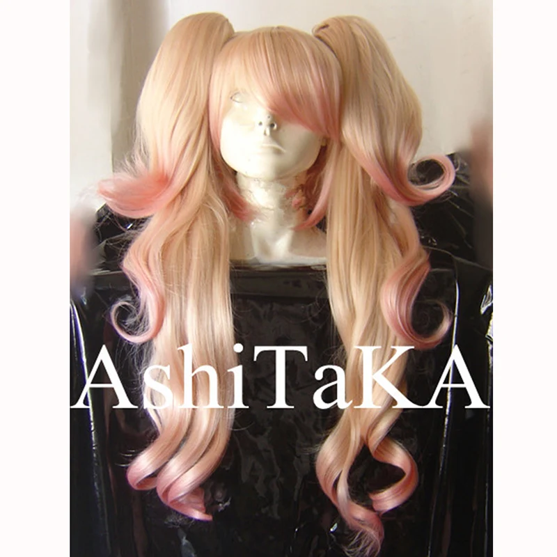 Высококачественный парик из аниме Danganronpa Дзюнко Эносима светло-розовый термостойкий парик с эффектом омбре на заколке для волос хвостики для косплея парик + шапочка для парика