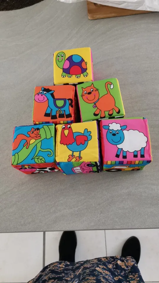 кубики сделаны по качеству хорошо, яркие, но одно но, пахнет от них очень сильно химикатами, думала постираю уйдет, постирала стало просто вонять сплошной химией, как можно такое давать вообще детям играть??? много минусов, не рекомендую их вообще покупать, дети просто отравятся, внутри просто вонючий паралон, у меня это зловоние распространилось по всей квартире, просто ужасно.