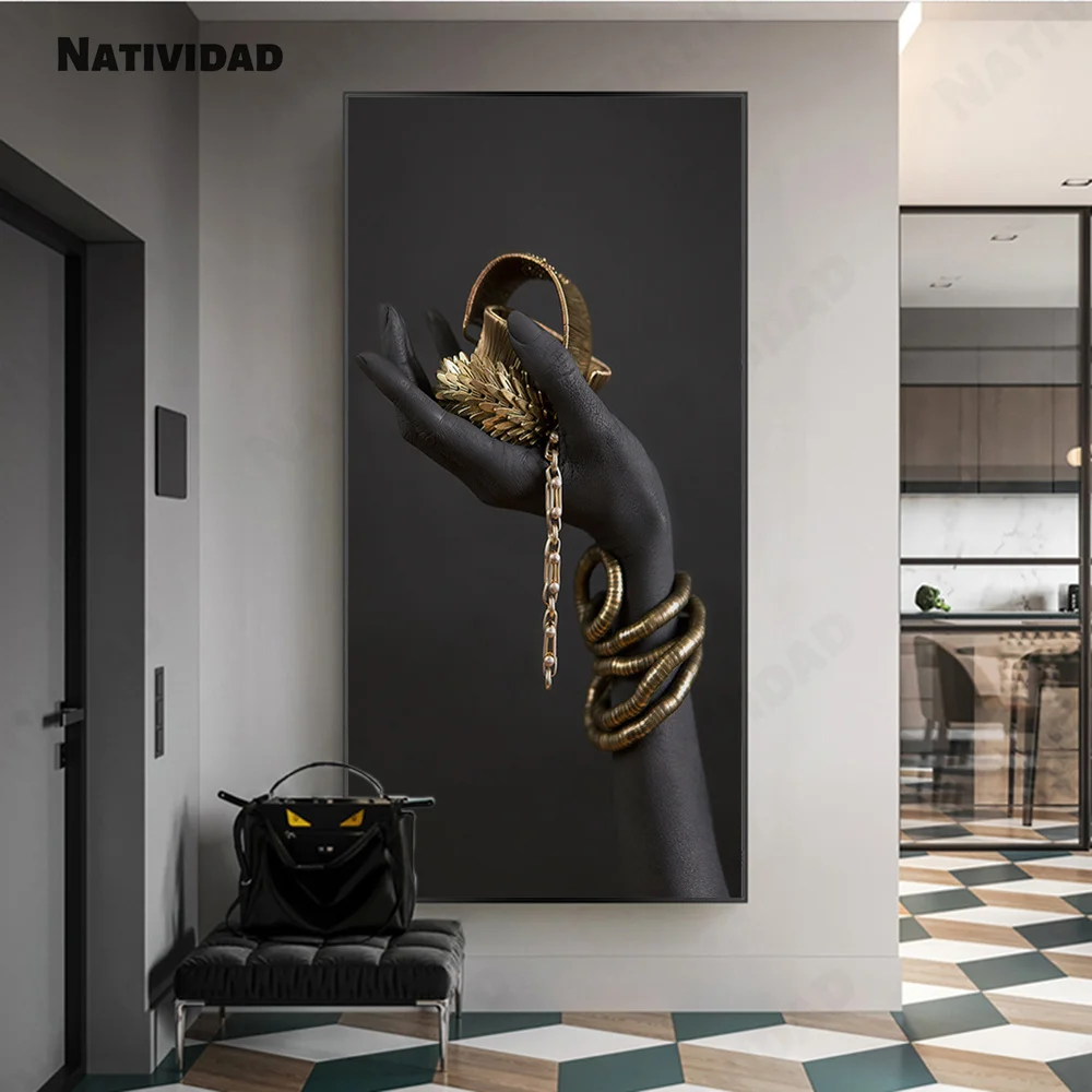 Золотистый браслет для двух рук, моделирование, рисование, искусство, Элегантная модная живопись на холсте, искусство, водостойкая чернильная живопись, искусство в гостиной