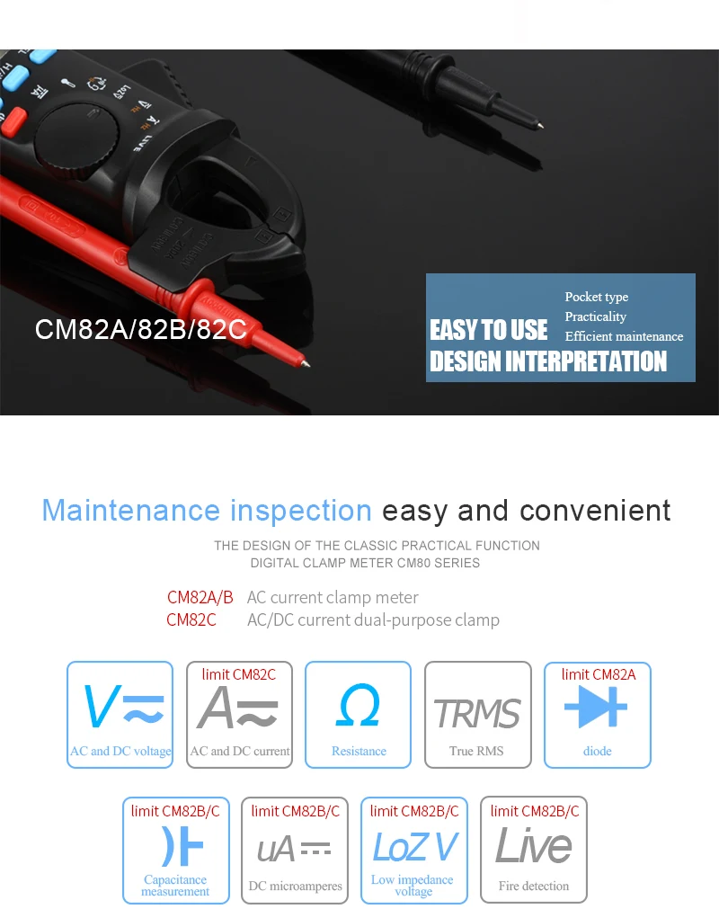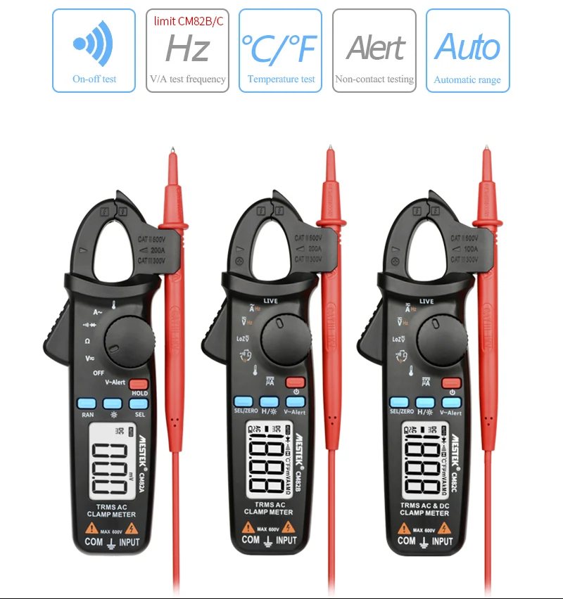 Цифровой токоизмерительный зажим MESTEK CM82ABC, Вольтметр постоянного и переменного тока, амперметр NCV Ом, тестер, амперметр, мультиметр, Инструмент электрика