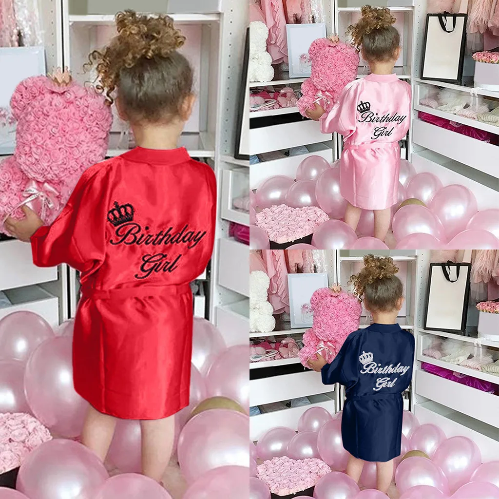День рождения пятно банный Халат, банный Халат, Детская домашняя одежда, одежда Для малышей; Детская однотонная шелковая атласное кимоно; Наряд Халат летняя одежда Для девочек, одежда Для сна, Халат Для девочек