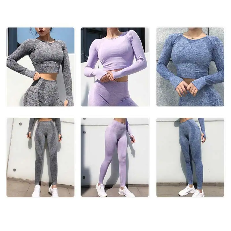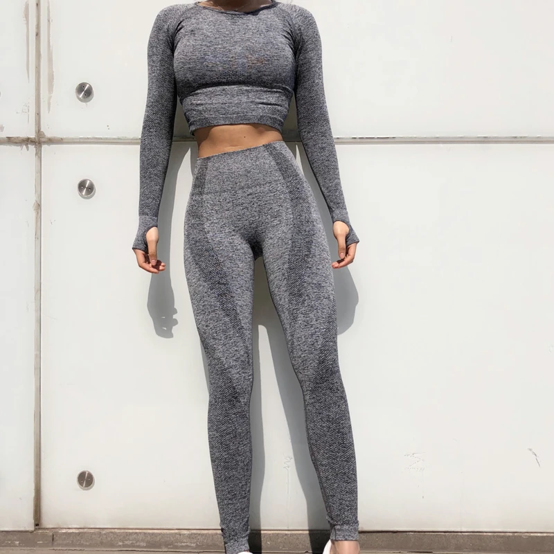 Женский спортивный костюм, бесшовный комплект для фитнеса и йоги, спортивный костюм с высокой талией, леггинсы для бега и тренировок в тренажерном зале, тренировочная рубашка