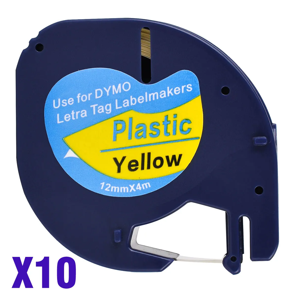 10 совместимый с Dymo LetraTag 91202 черный на желтом цвете 12 мм x 4 м Пластик ярлык для LT-100H, LT-100T, LT-110T, QX 50, XR, XM,
