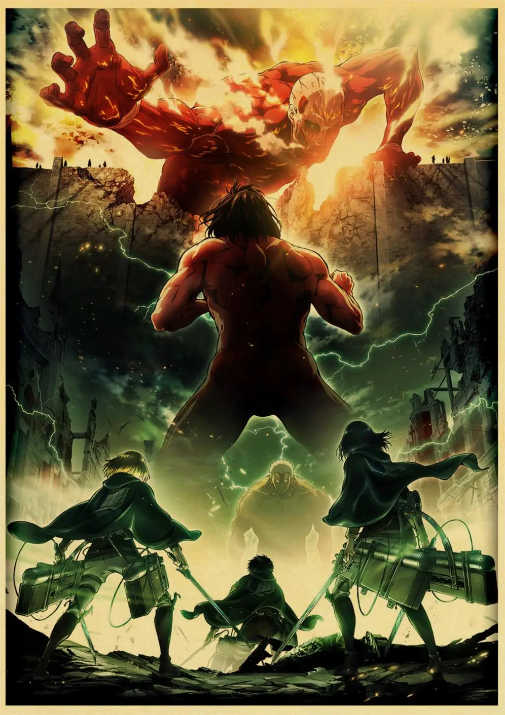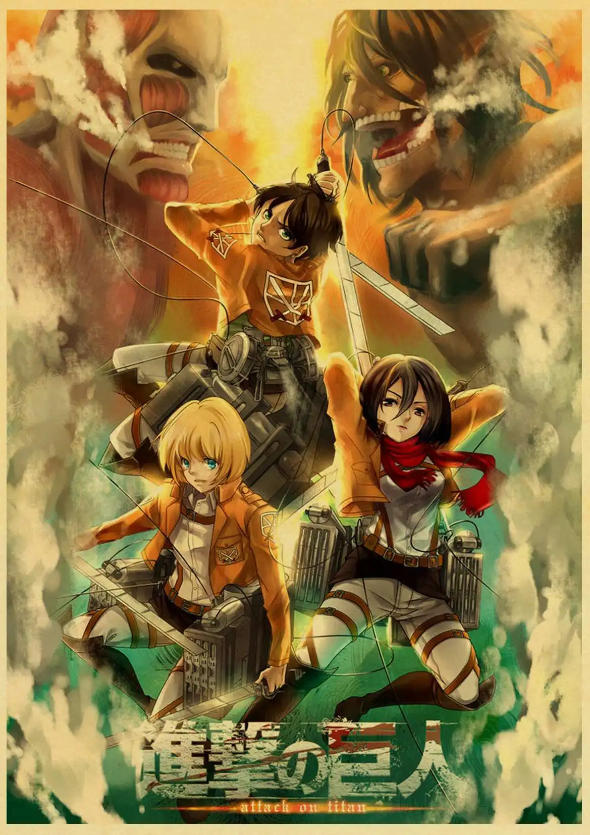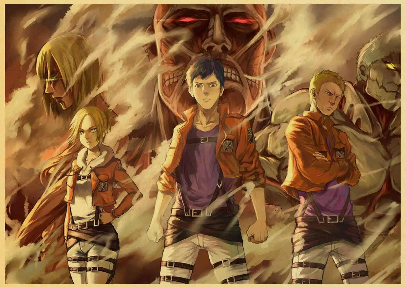 Японское аниме атака на титанов, ретро постеры shкруги No Kyojin, крафт-бумага, Высококачественная картина для домашнего декора, наклейки на стену