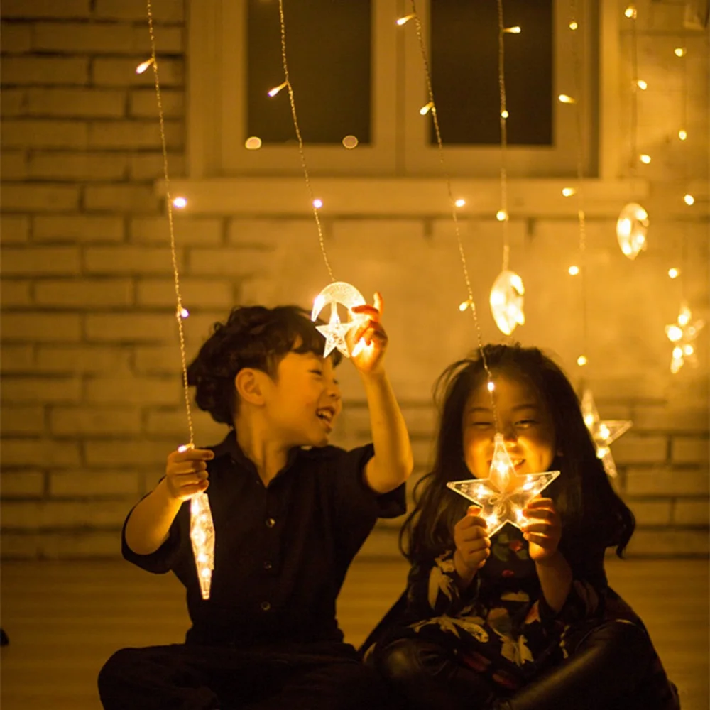 Рождественские огни для помещений и улицы eu220 в, сказочные огни, лунная звезда, светодиодная гирлянда, украшение для дома вечерние вечеринки, праздничное освещение